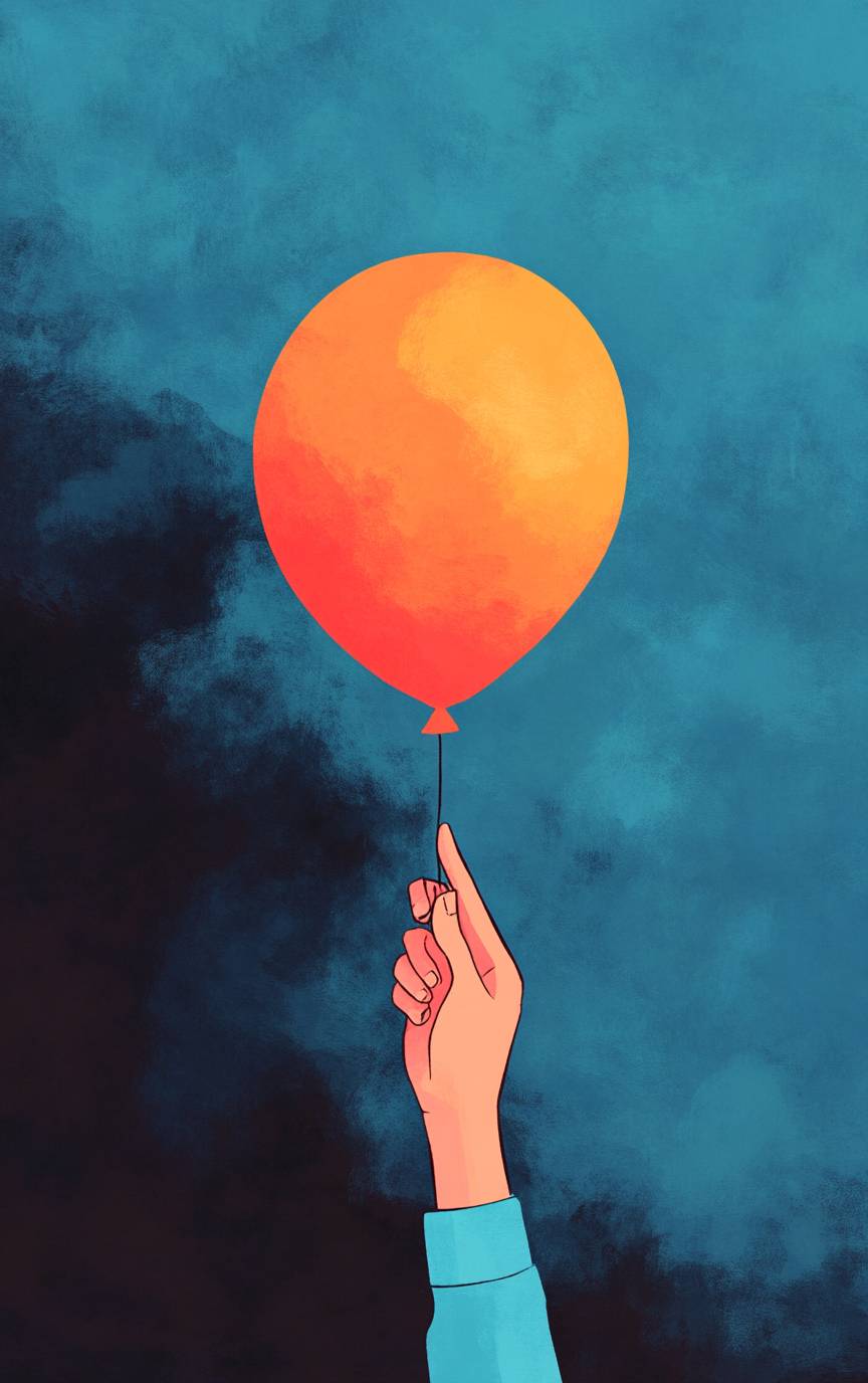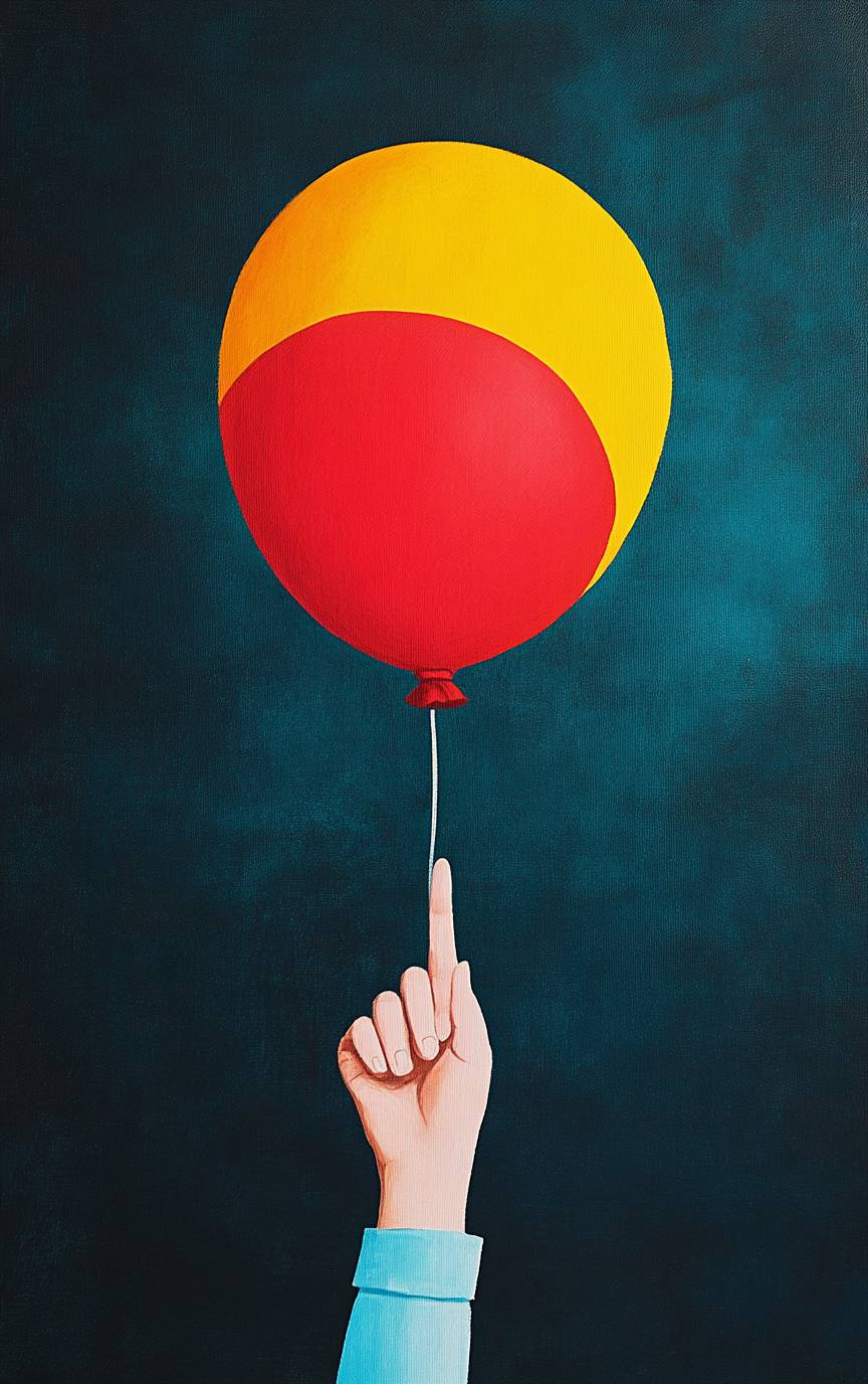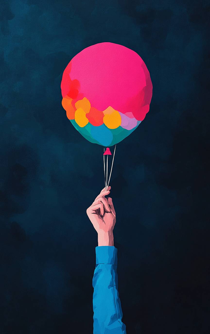يد تمتد من سحابة مظلمة تحاول القبض على بالون ملون.