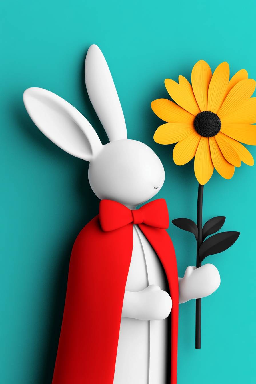 صورة لارنب ابيض يرتدي رداء بطل خارق احمر