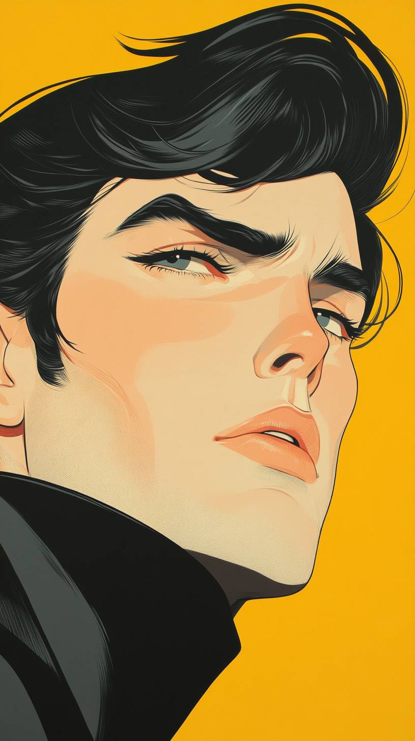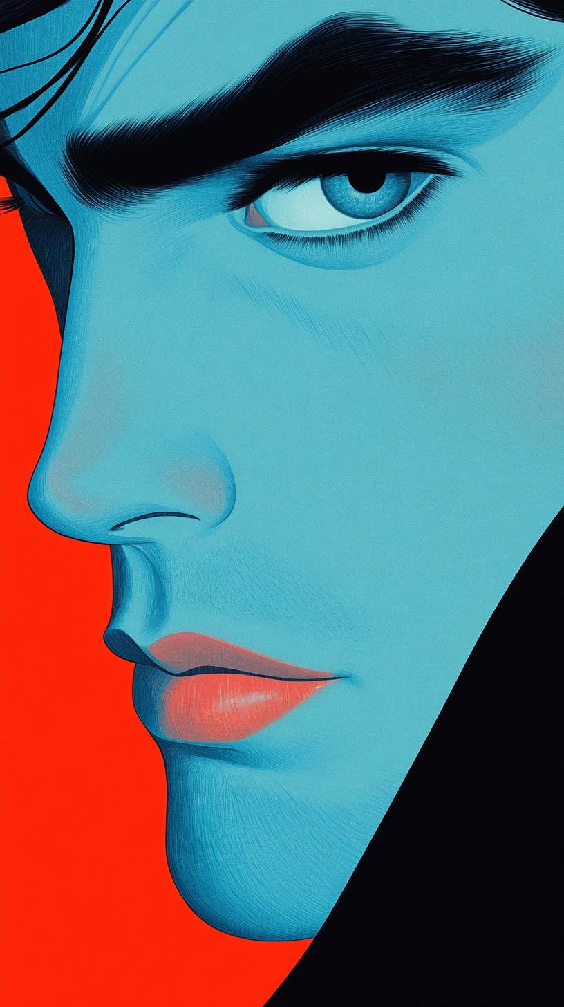 Animation cel. 1970s Hanna Barbera cartoon about all male boy band. The Flying Foxes. Flat. Vector. Pale skin. High contrast. Patrick Nagel. --ar 9:16 --style raw --personalize vt434jb --stylize 750 --v 6.1