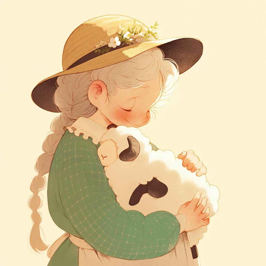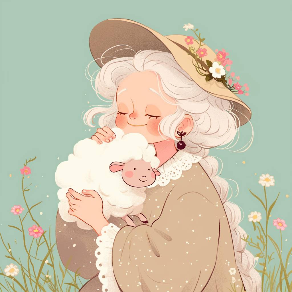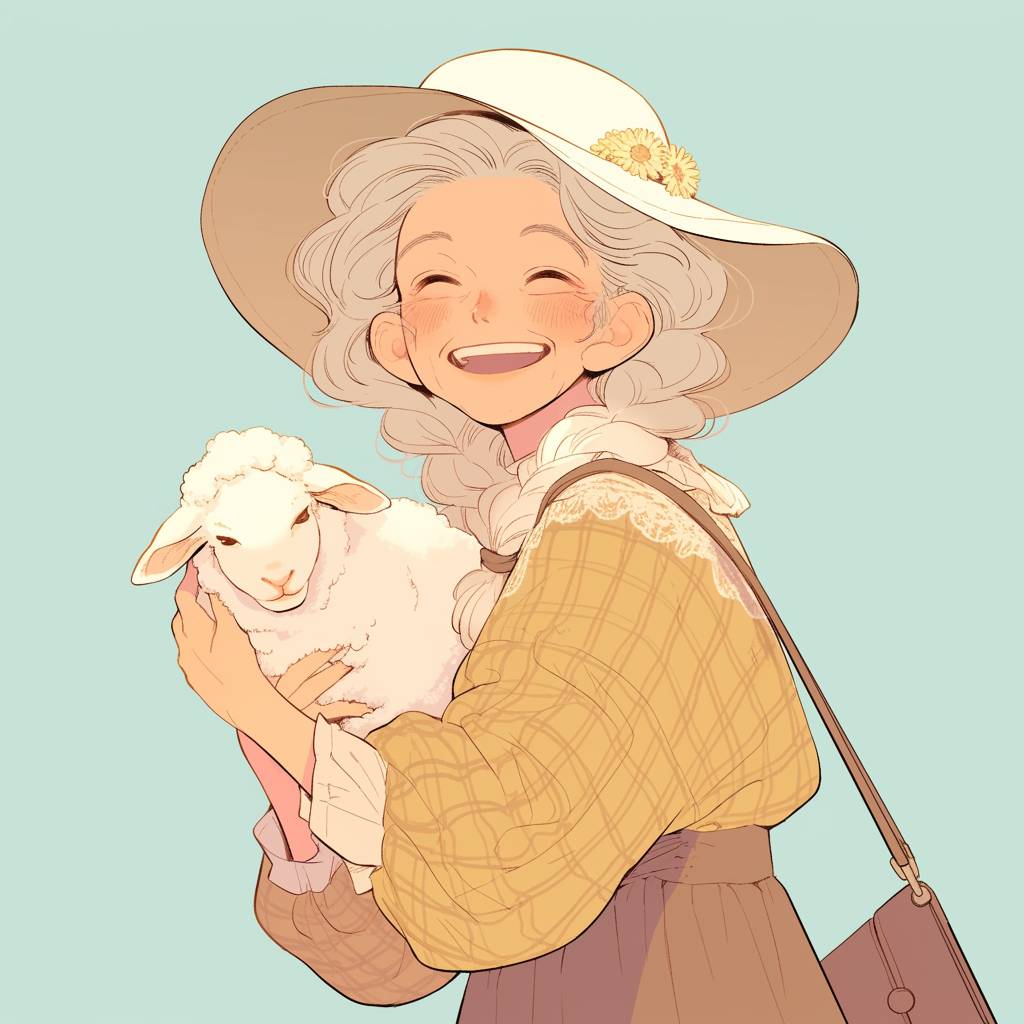 امرأة مسنّة ترتدي قبعة تحمل خروفًا صغيرًا