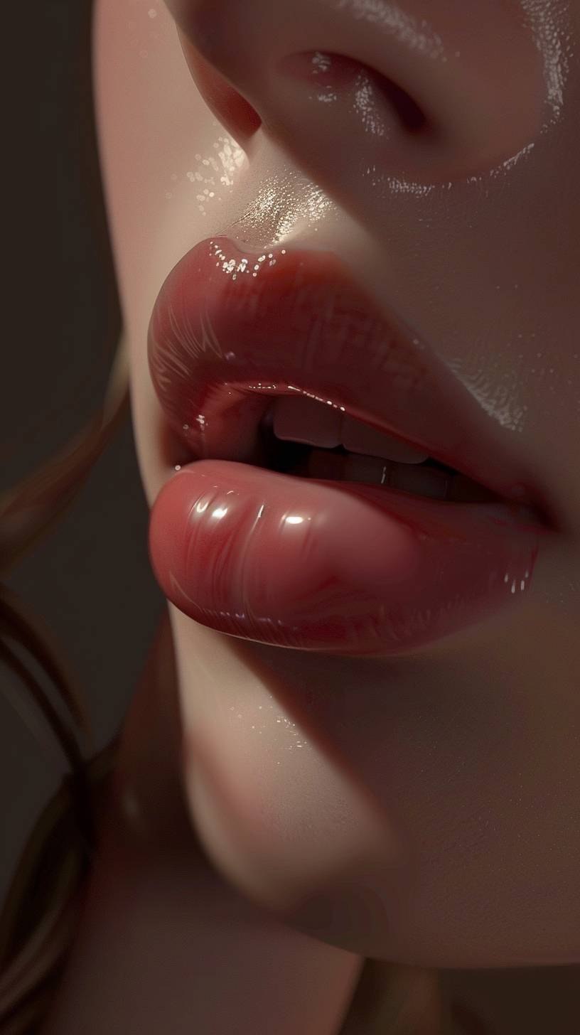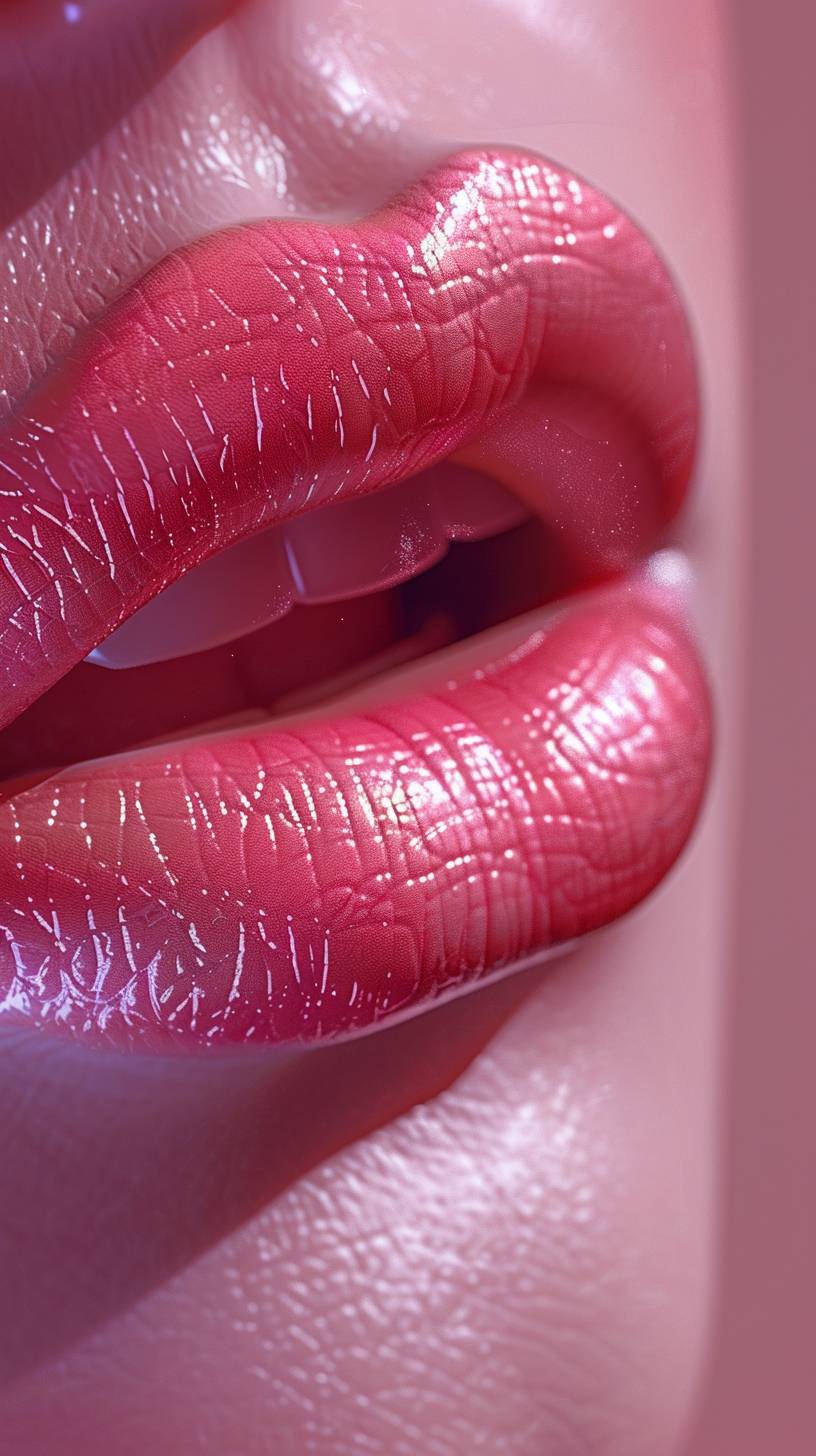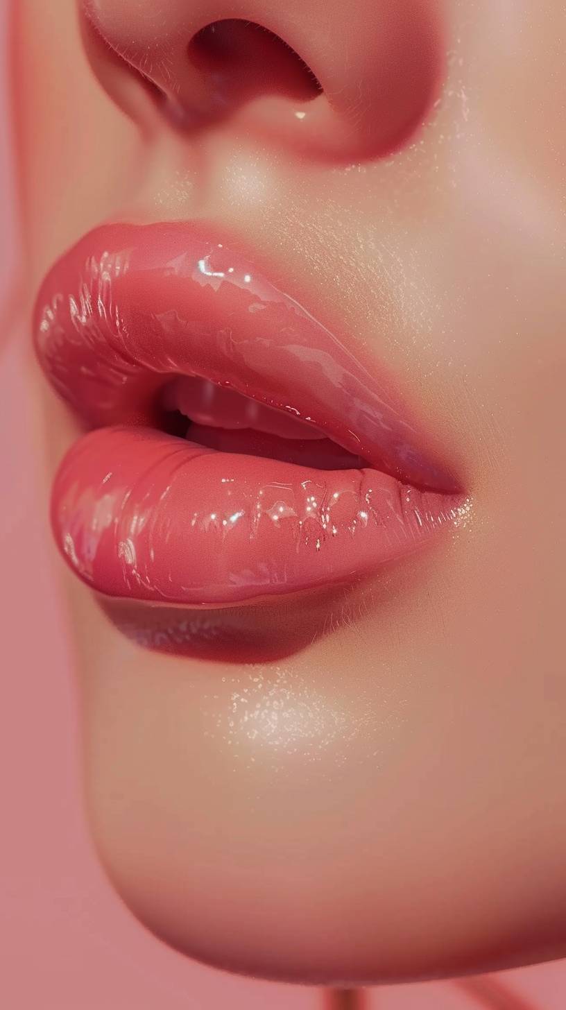 شفاه ممتلئة وجميلة، صورة مقربة، صورة واقعية، ظل وردي ناعم، لون شفاه طبيعي