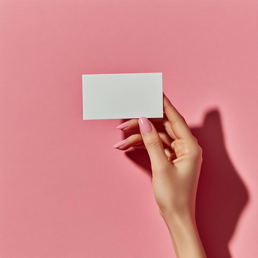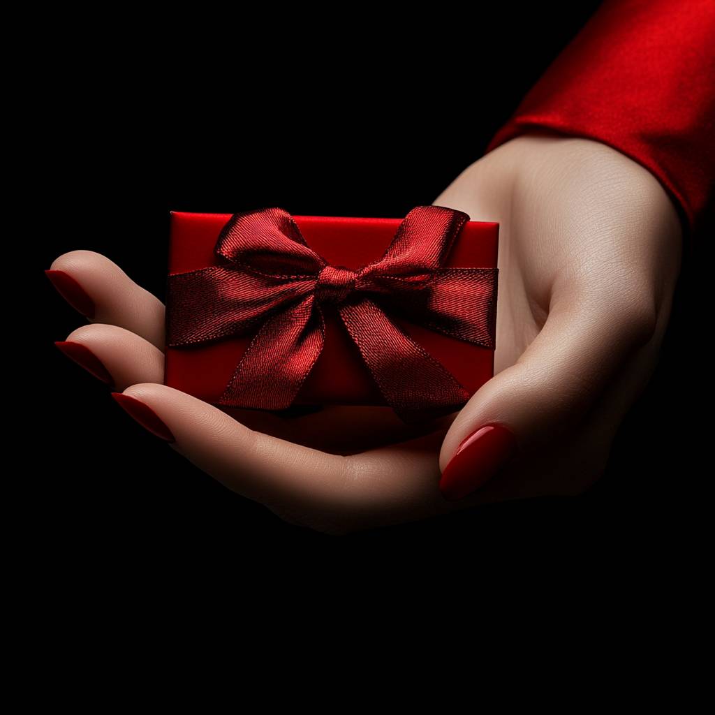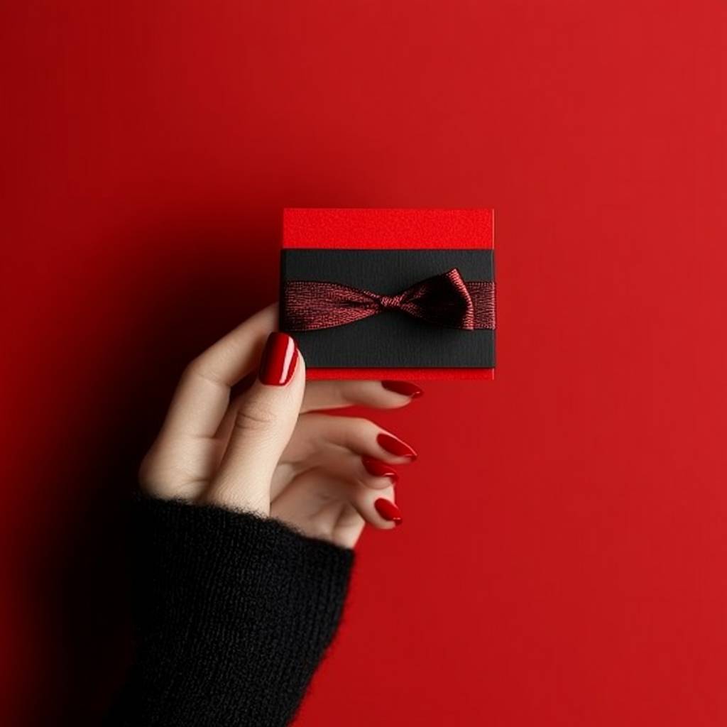 يد أنثوية أنيقة تحمل بطاقة هدايا
