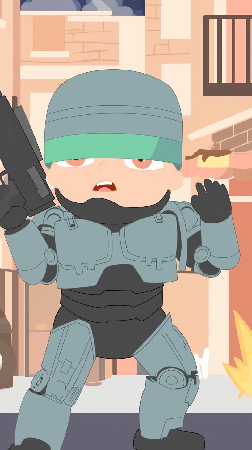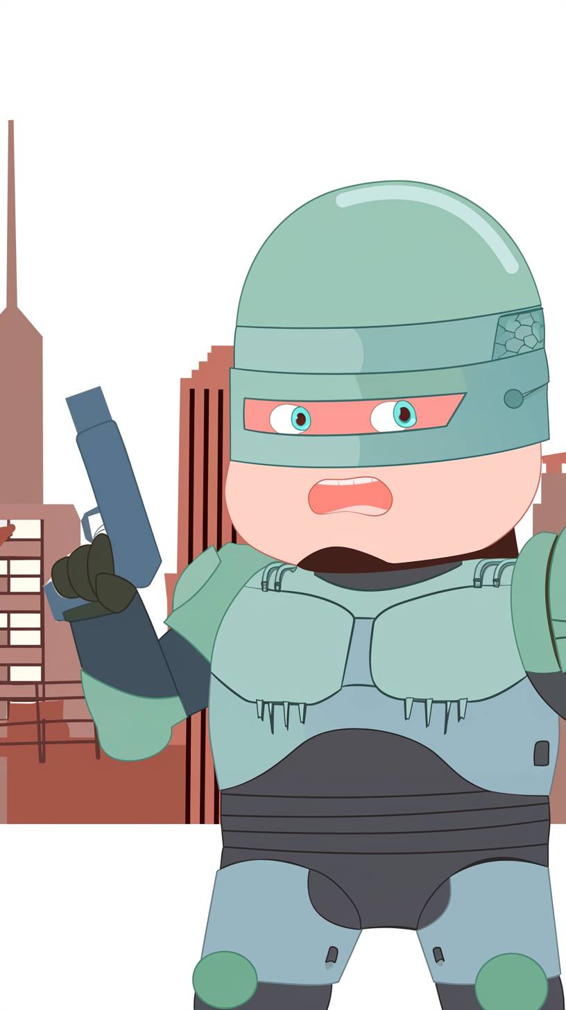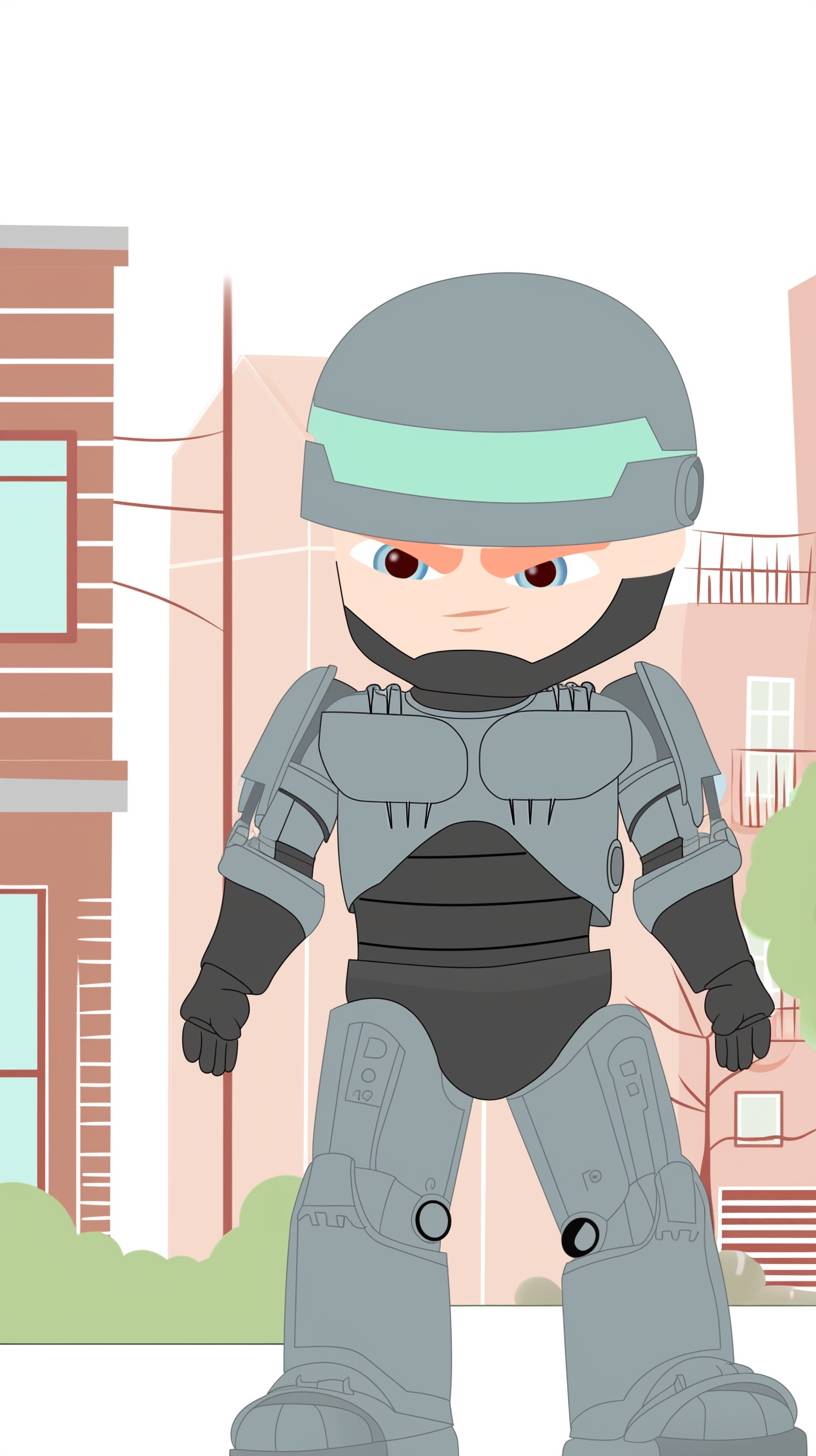رسوم كاريكاتورية لروبوكوب بأسلوب جيم وودرينغ.