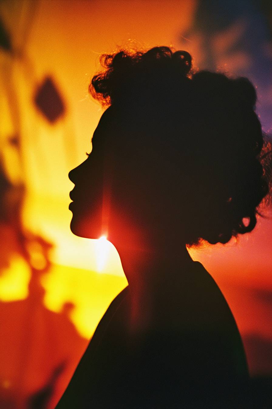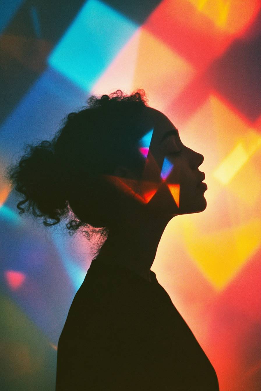silhouette of [SUBJECT] , backlit with [COLOR] light, random geometry & shapes in the background, blur, bulb photography, film, color negative --ar 2:3 --v 6.1