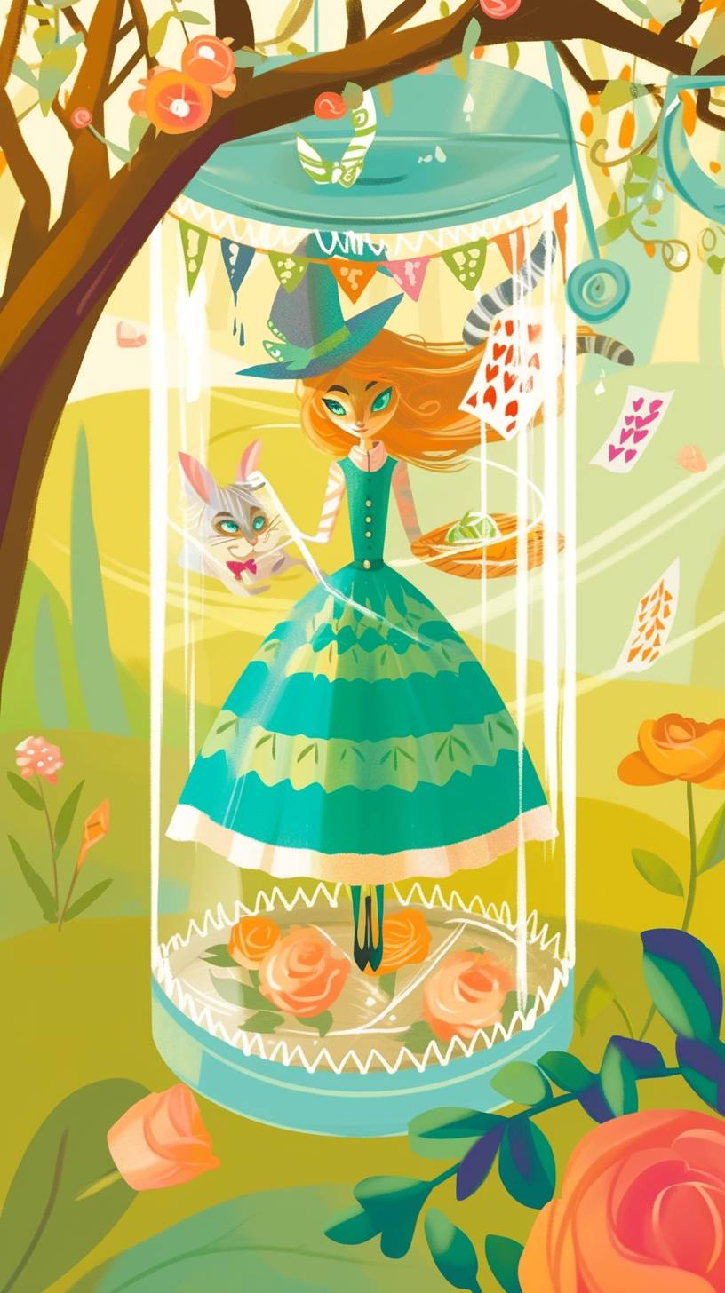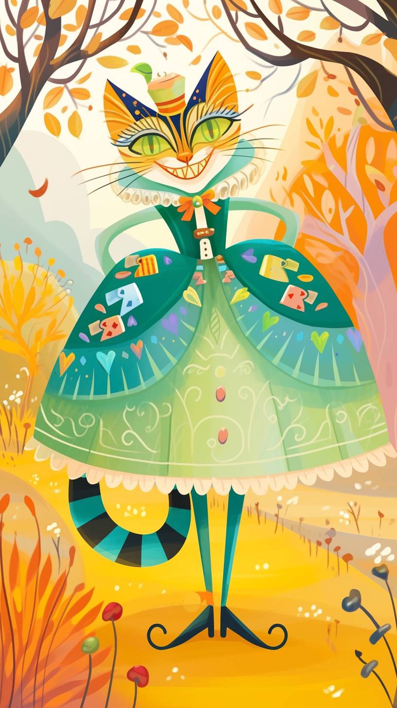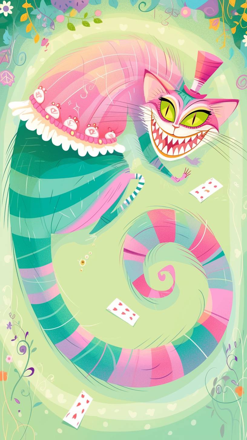 A simple drawing of Cheshire Cat, in the style of Allie Brosh with simple lines, flat colors and a stick figure, minimalistic, simple background --ar 9:16 --style raw --sref 3255268432 --niji 6