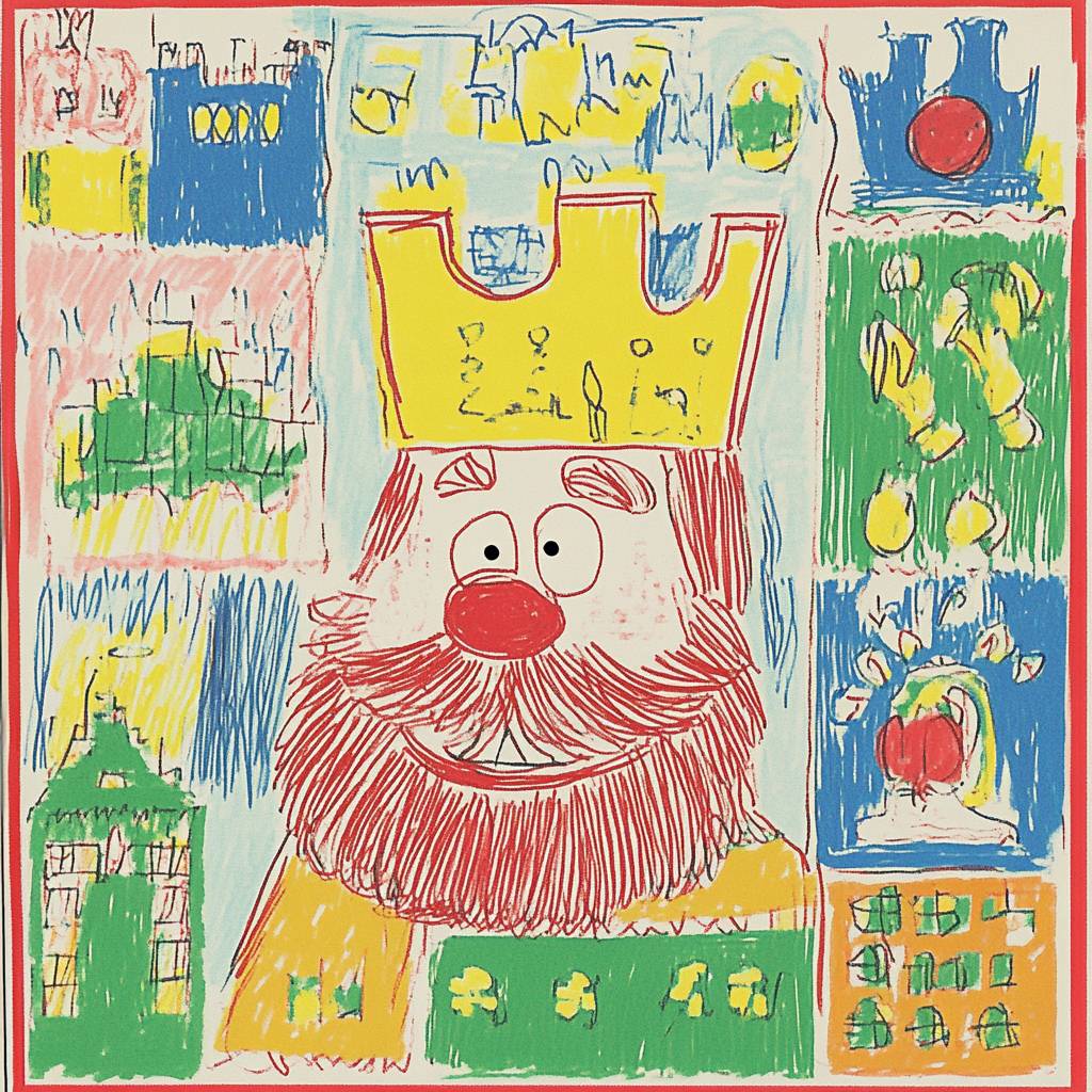 الرسم الكاريكاتوري يصور مشهداً من قصة خيالية عن الملك الغبي.