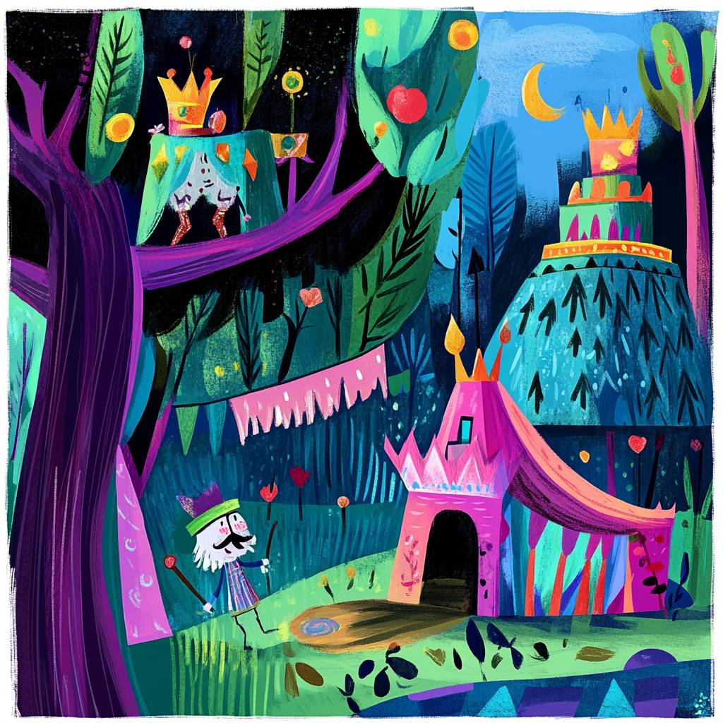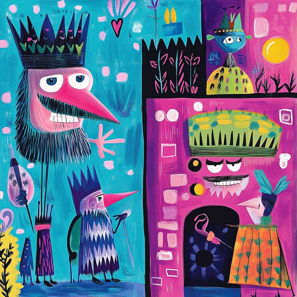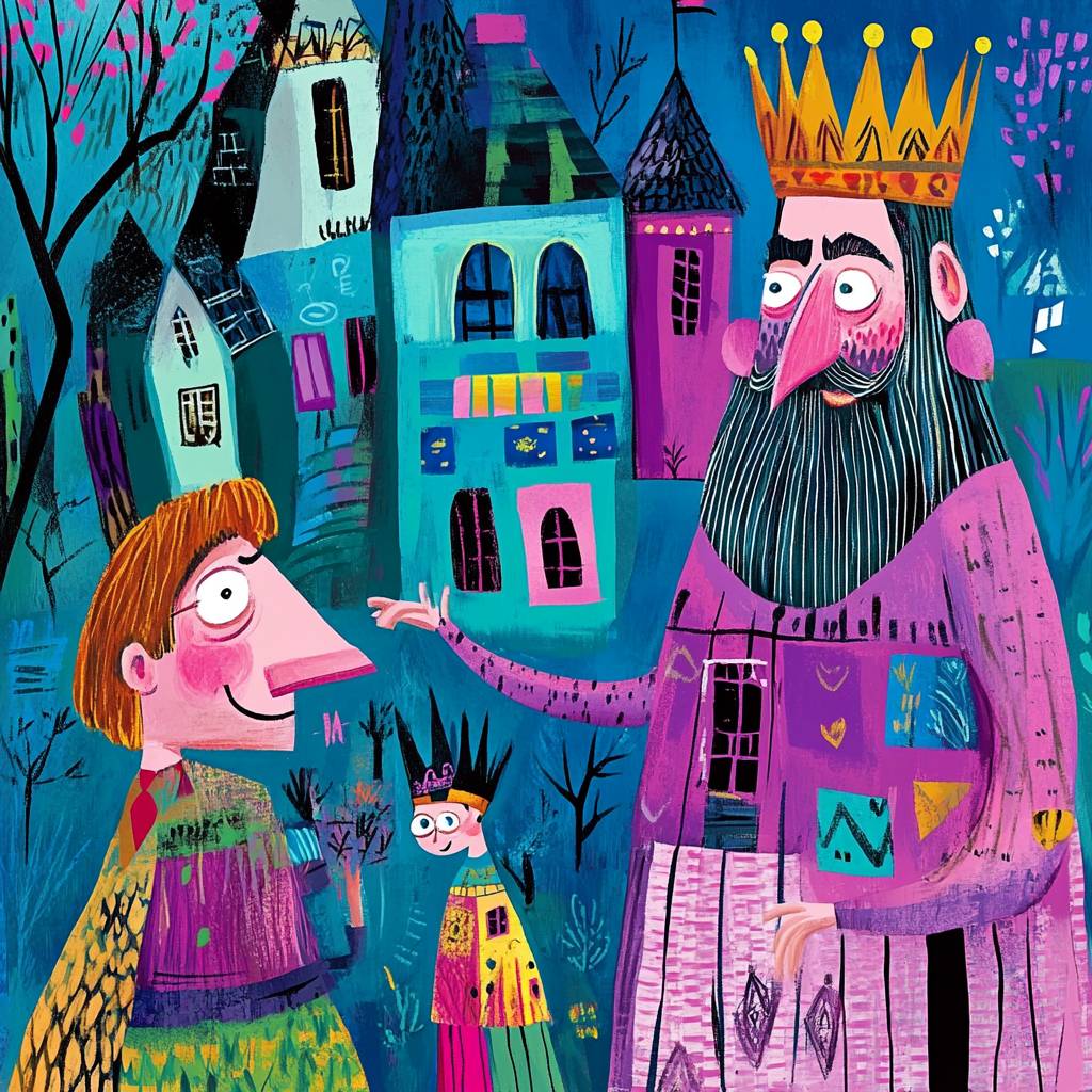 تظهر القصص المصورة مشهداً من حكاية خرافية عن الملك الأحمق.