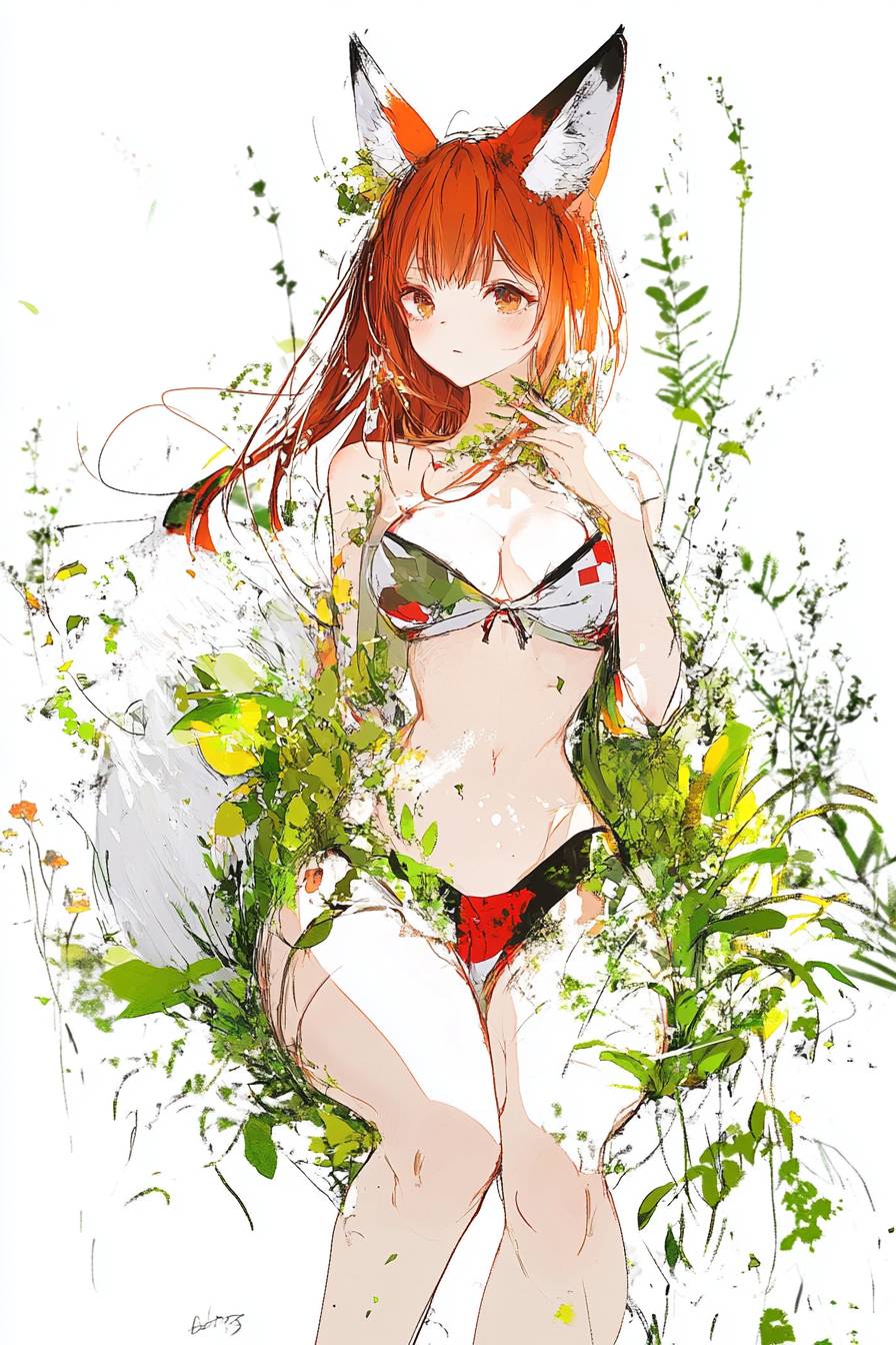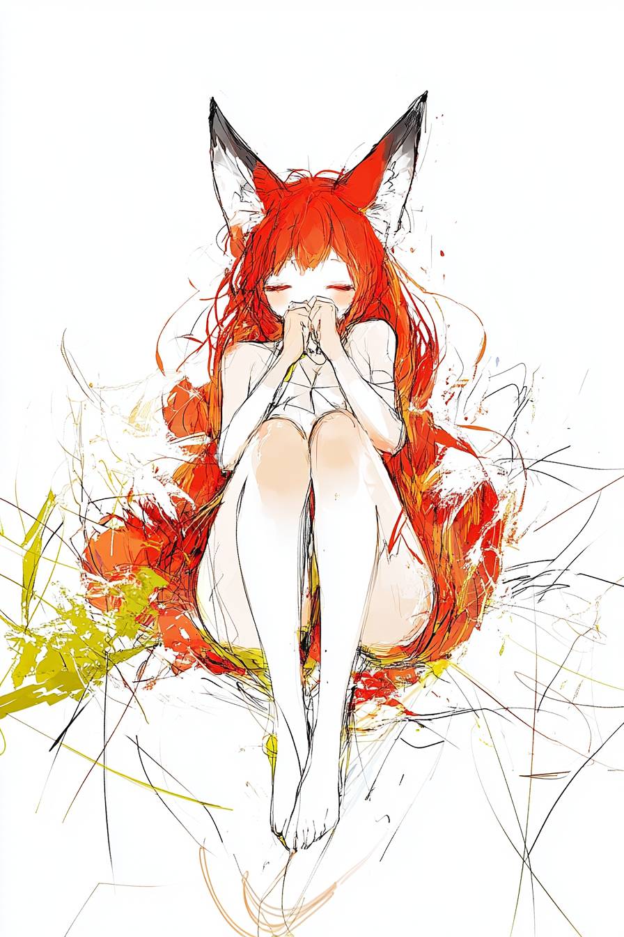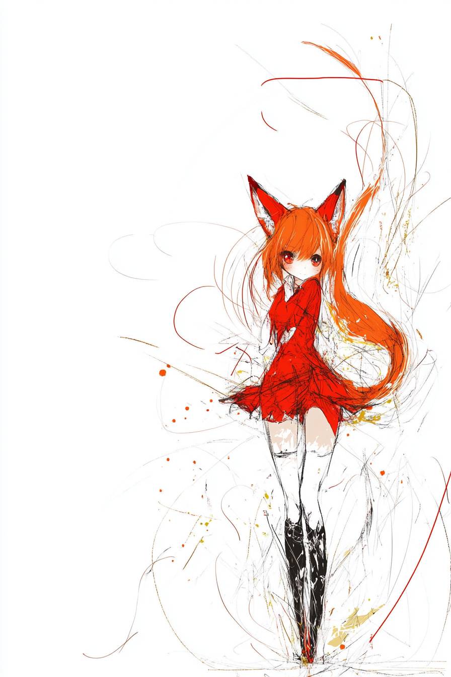 فتاة ثعلب أنيمي لطيفة، ذيل رقيق