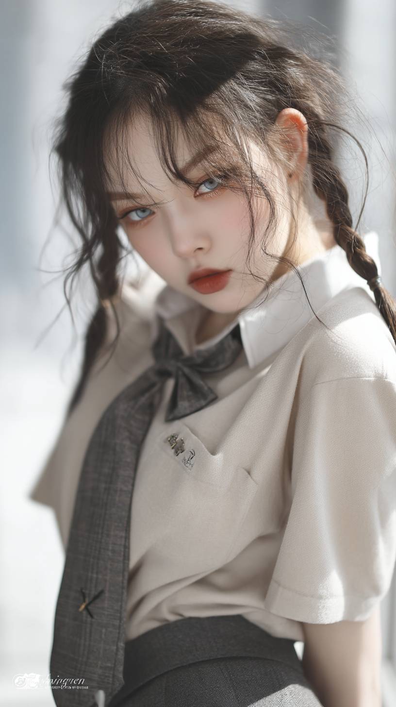 فتاة مدرسة كورية جميلة ذات بشرة بيضاء