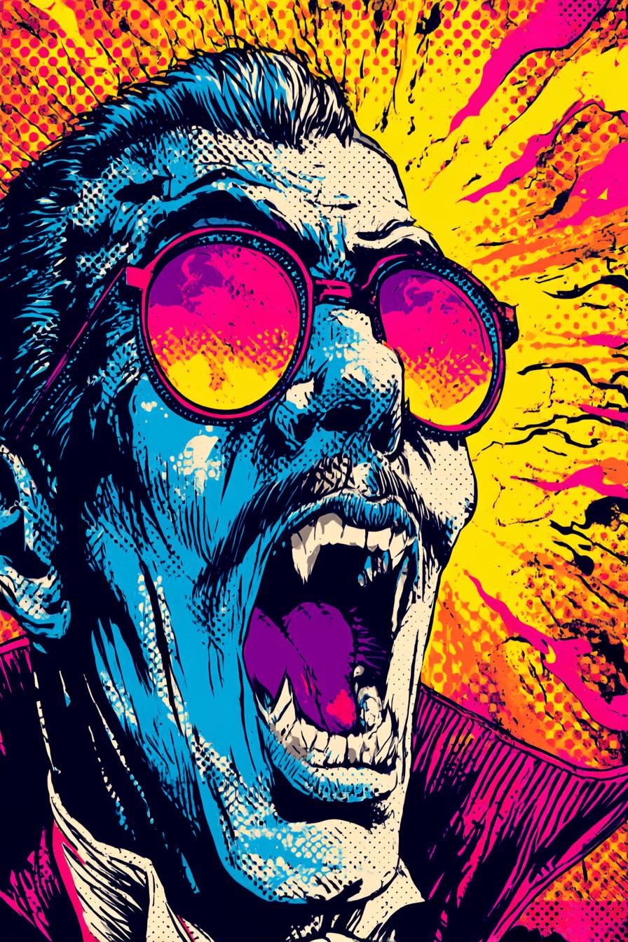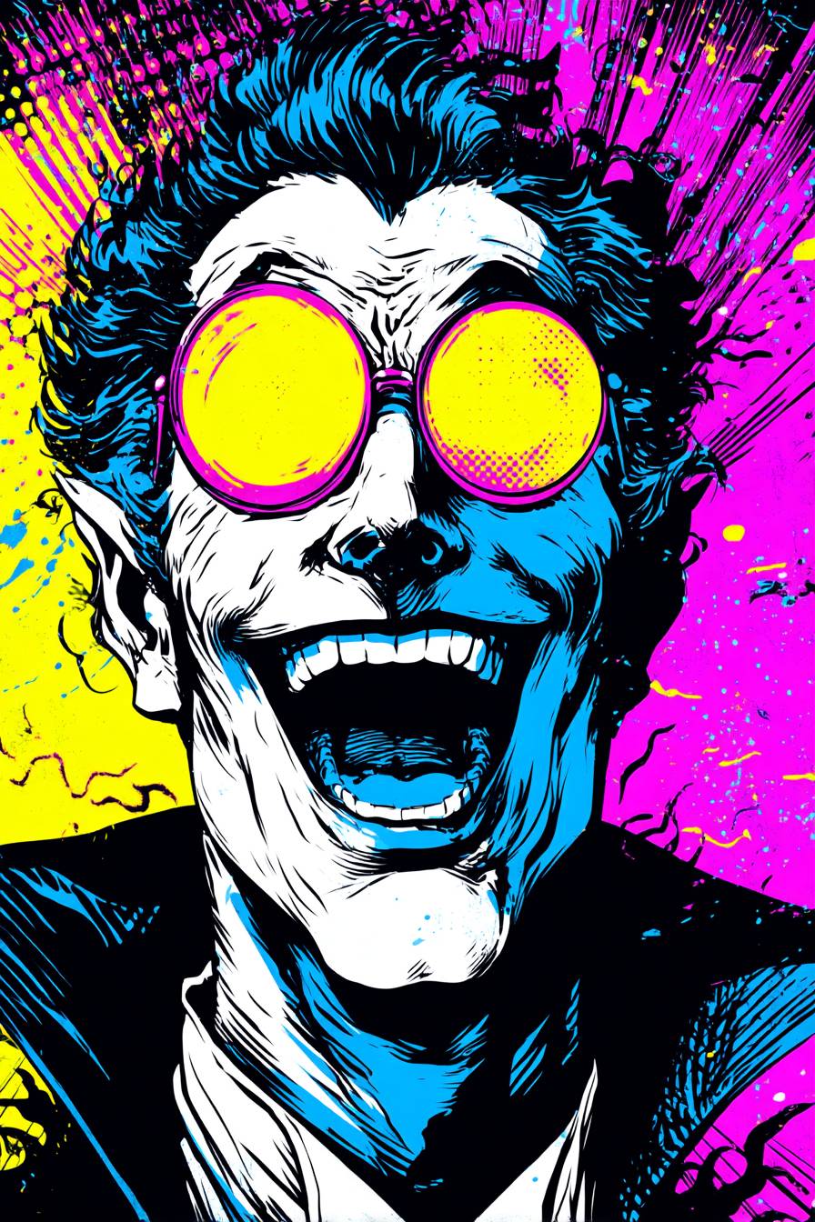 غطاء كتاب هزلي لدراكولا الكارتوني الجذاب يرتدي نظارات شمسية، ويبعث على الإيجابية.