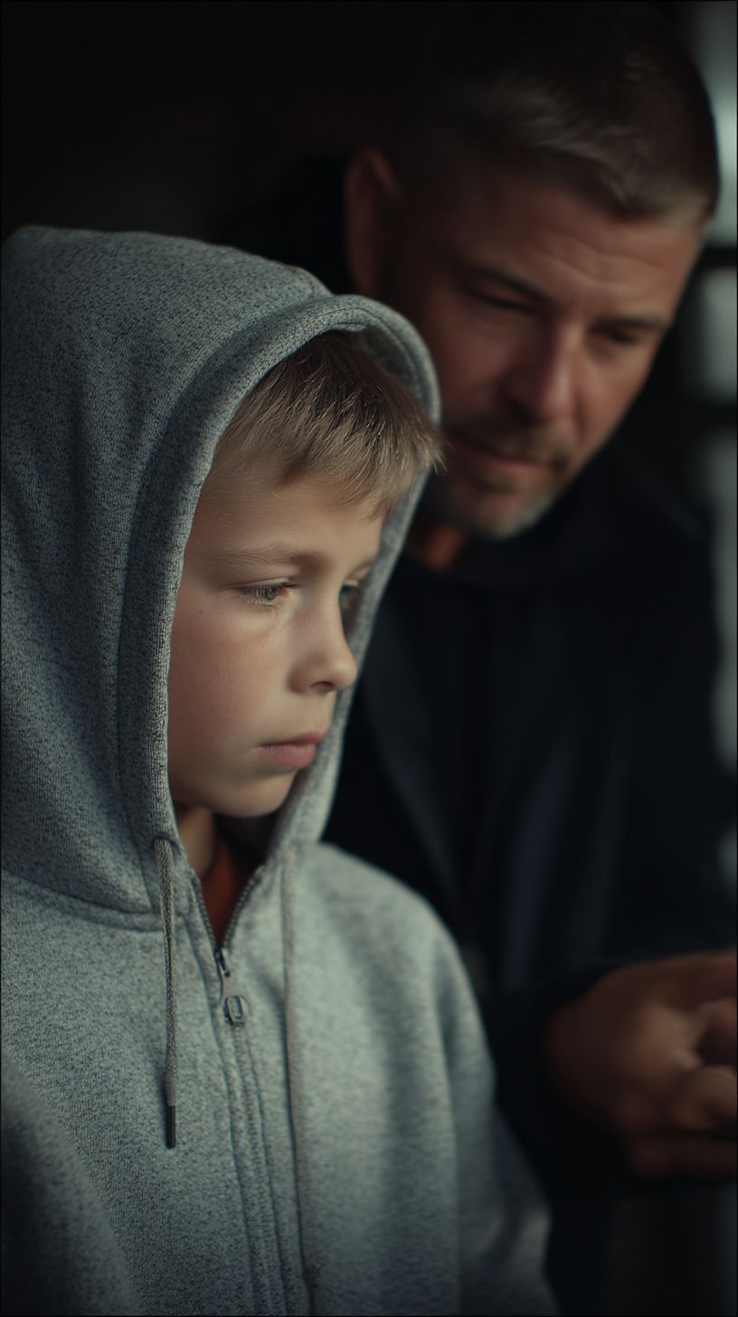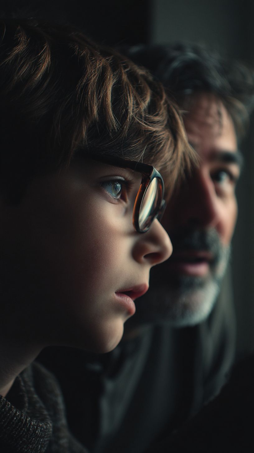 يستمع الابن باهتمام إلى تعليمات والده الجادة.