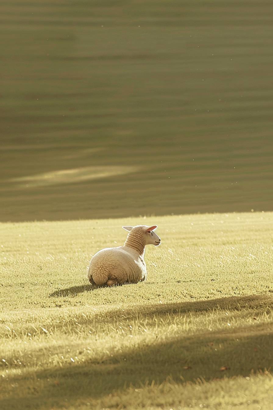 خروف في المسافة على العشب، منظر جوي، مناظر طبيعية فوتوريلية، خلفيات بسيطة، ترتيبات مخططة، خطوط دقيقة، منظور خطي، ظلال وضوء مرقط.