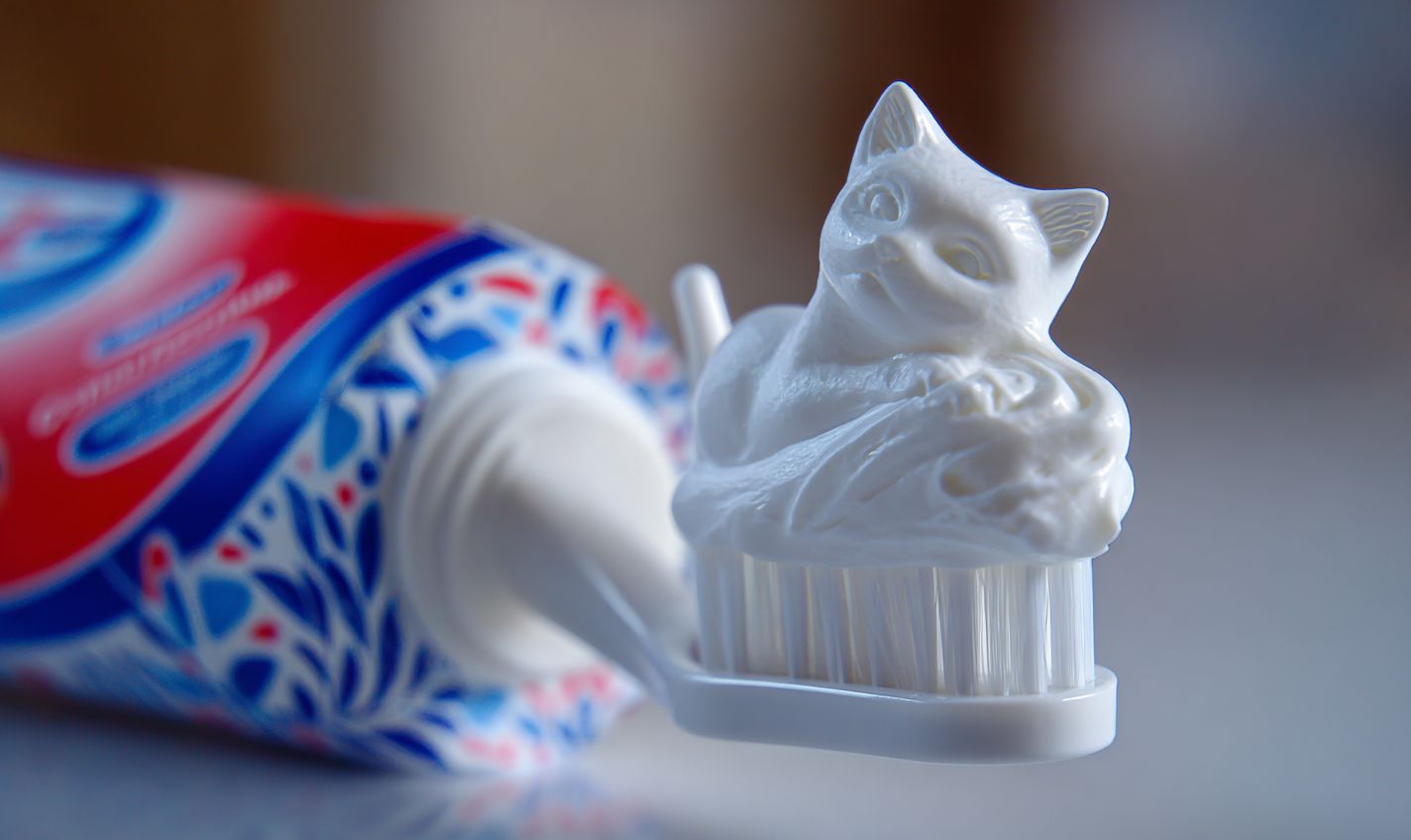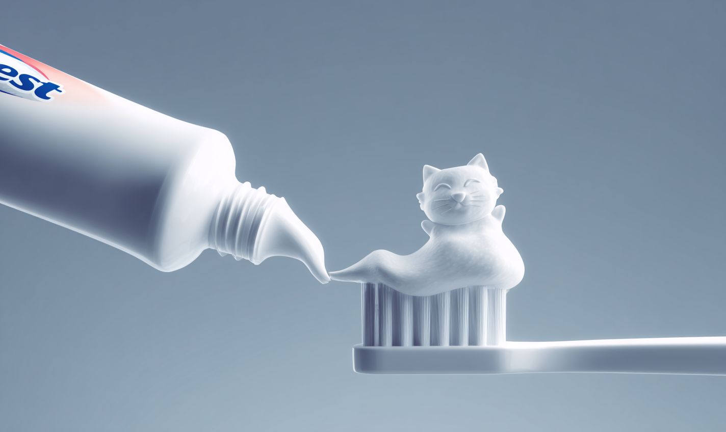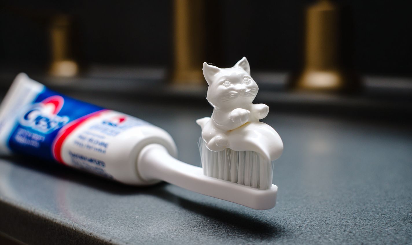 أنبوب من معجون الأسنان كريست يخرج معجون أسنان أبيض على شكل قطة