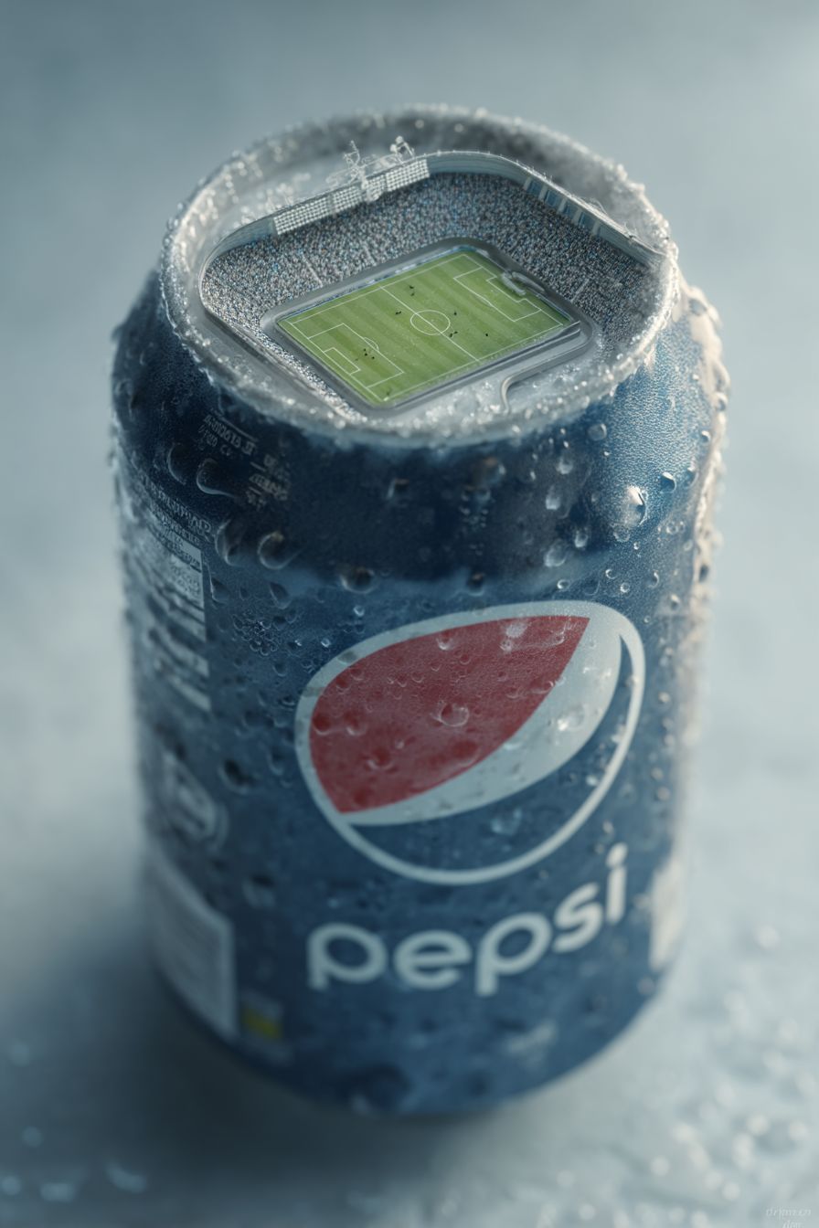 علبة بيبسي باردة فائقة الواقعية تتحول إلى ملعب كرة قدم مصغر