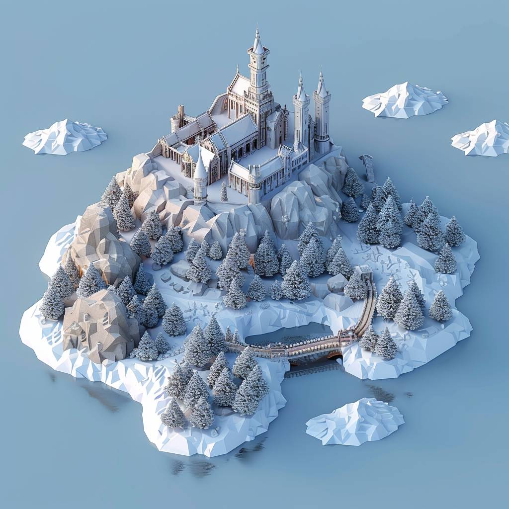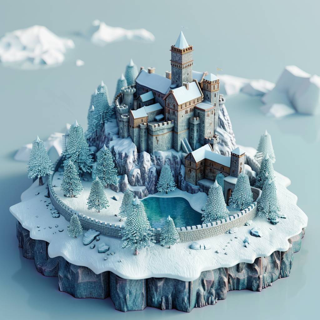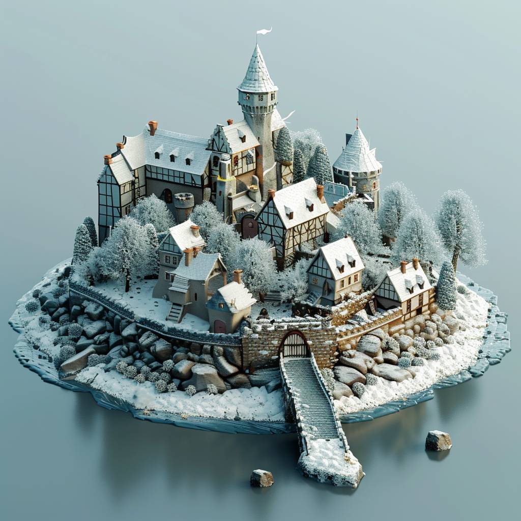 جزيرة متساوية القياسات لطيفة، وينترفيل من لعبة العروش، تم إنشاؤها باستخدام بلندر 3D.