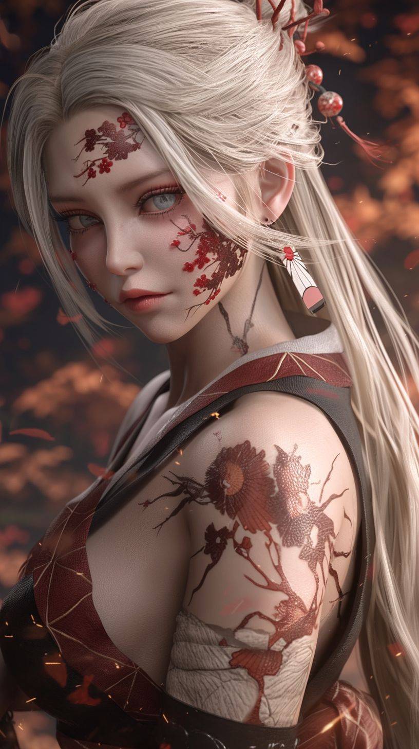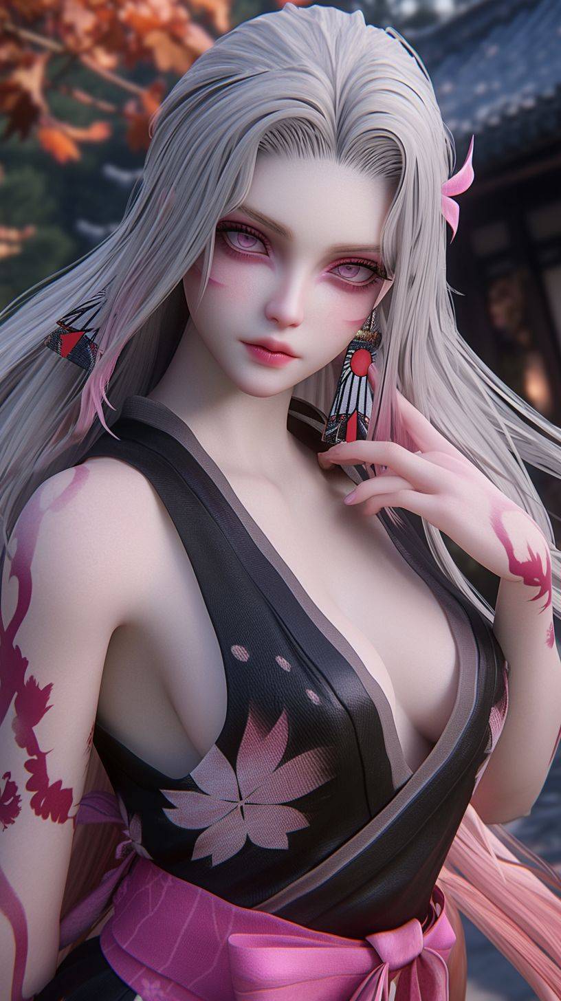 Daki Demon Slayer, in the style of high dynamic range, kawaii art, Koyoharu Gotouge, kimetsu no yaiba, animated illustrations, daz3d, exotic realism, vibrant manga, Chinese-inspired --ar 9:16 --niji 6 --style raw