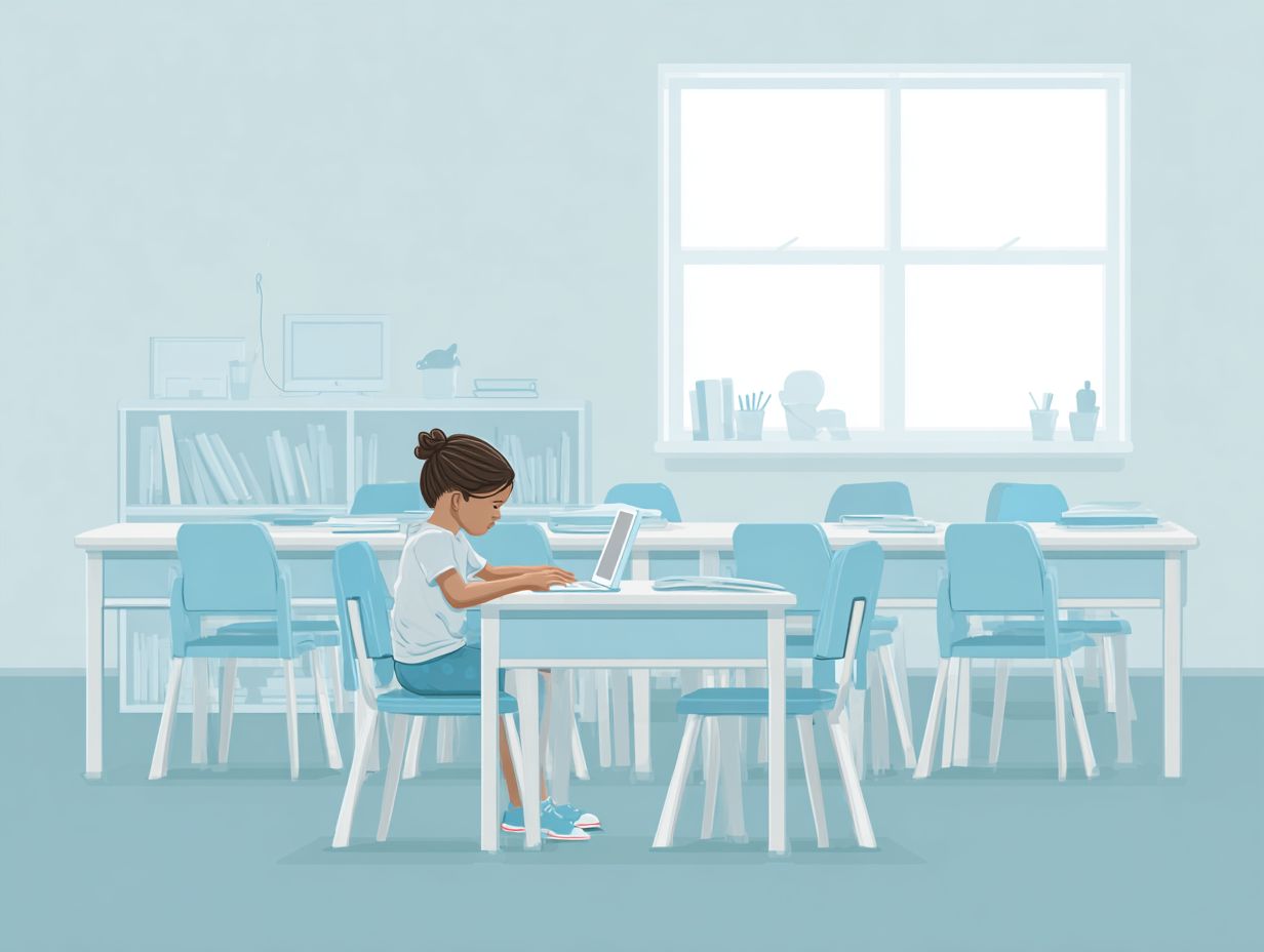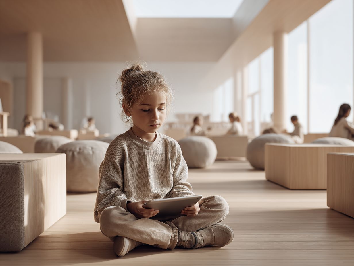 طفل في فصل دراسي ببيئة هادئة وشاملة مصممة للتركيز والتنظيم الذاتي