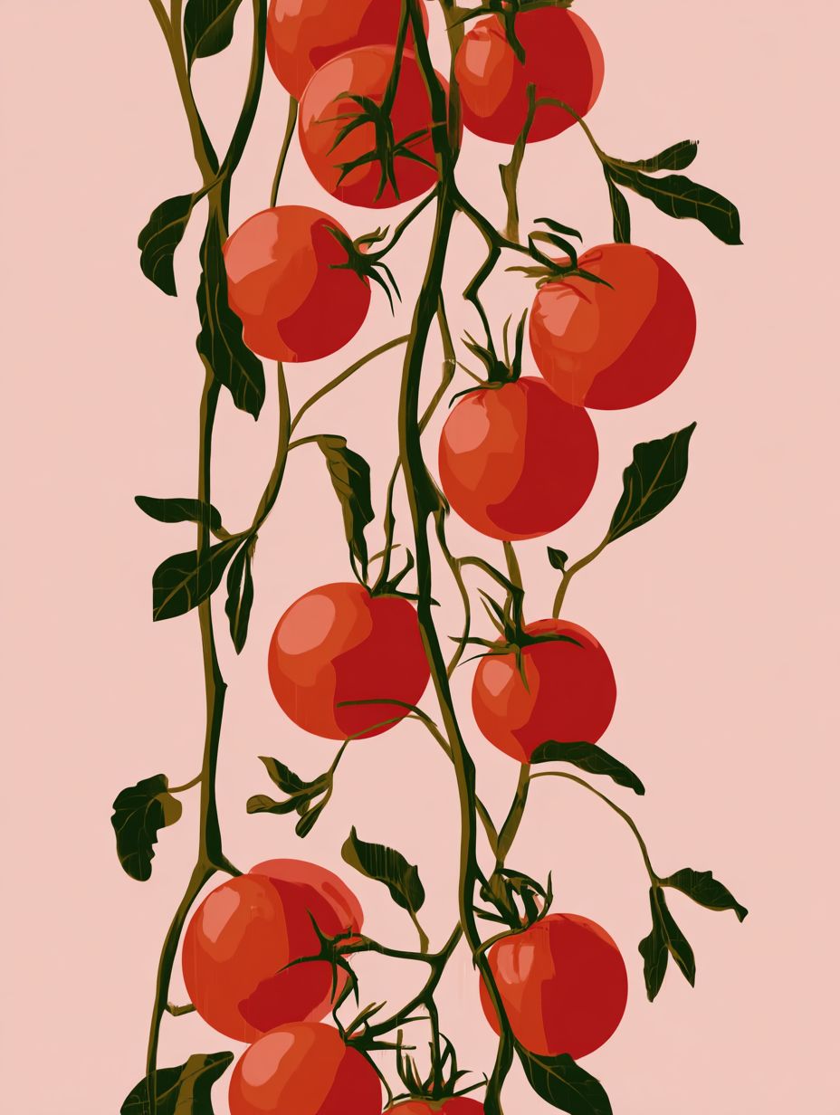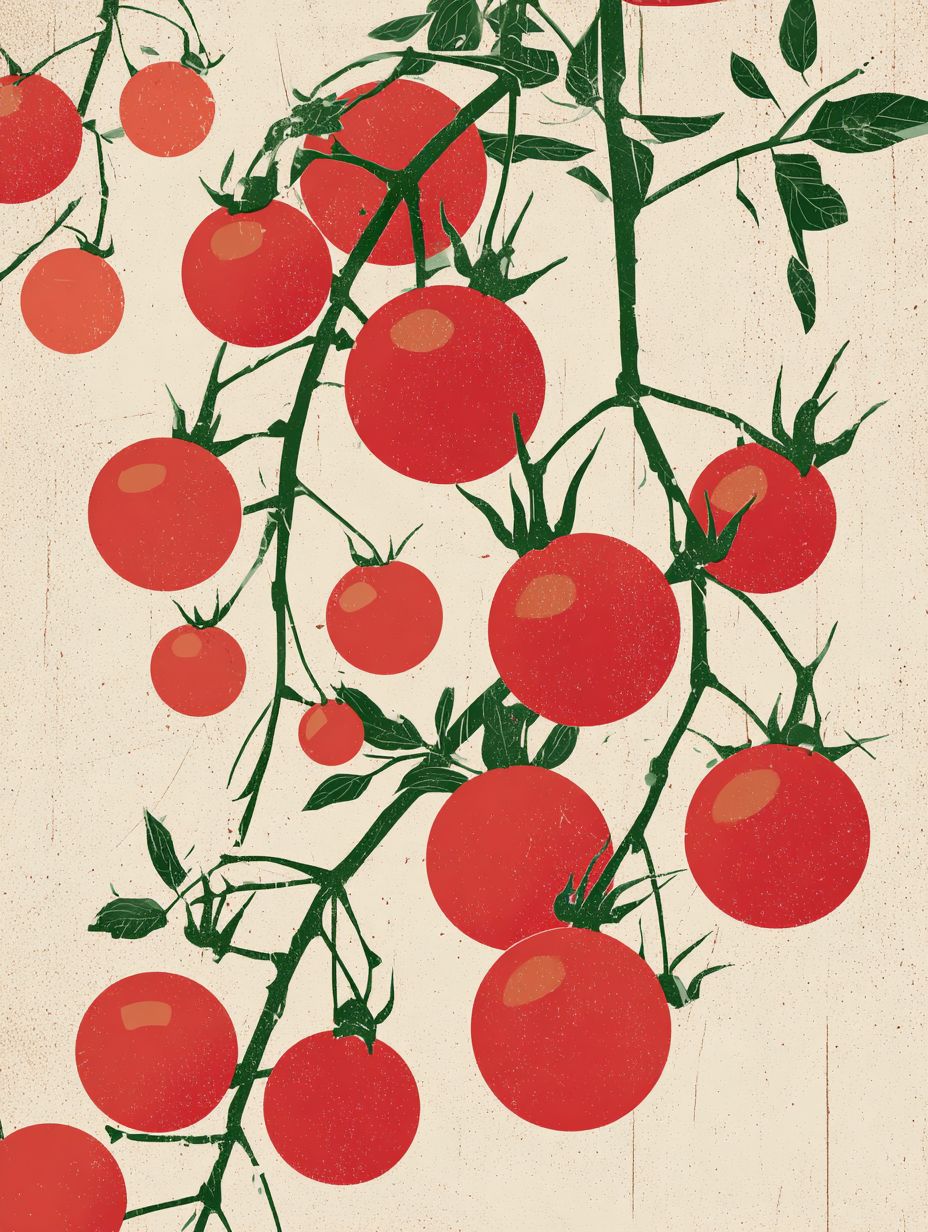 طباعة بسيطة مستوحاة من يايوي كوساما تحتوي على عنبوط من الطماطم