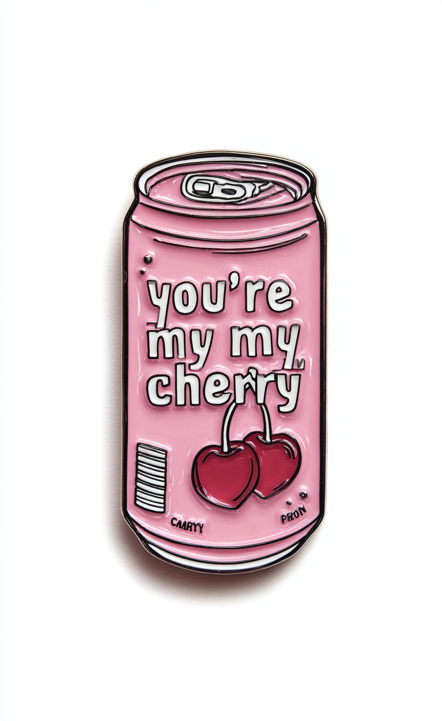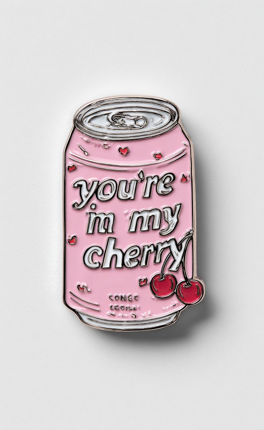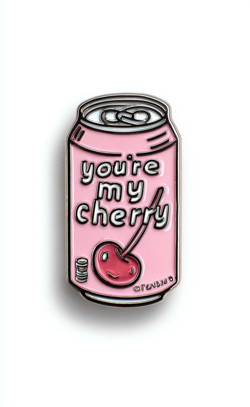هذه دبوس مينا لطيف على شكل علبة صودا وردية مكتوب عليها 'أنت كرزتي'
