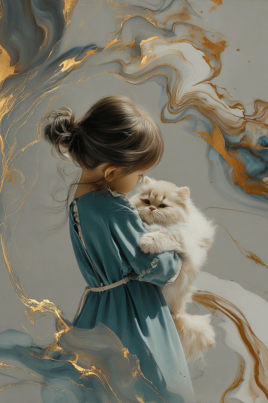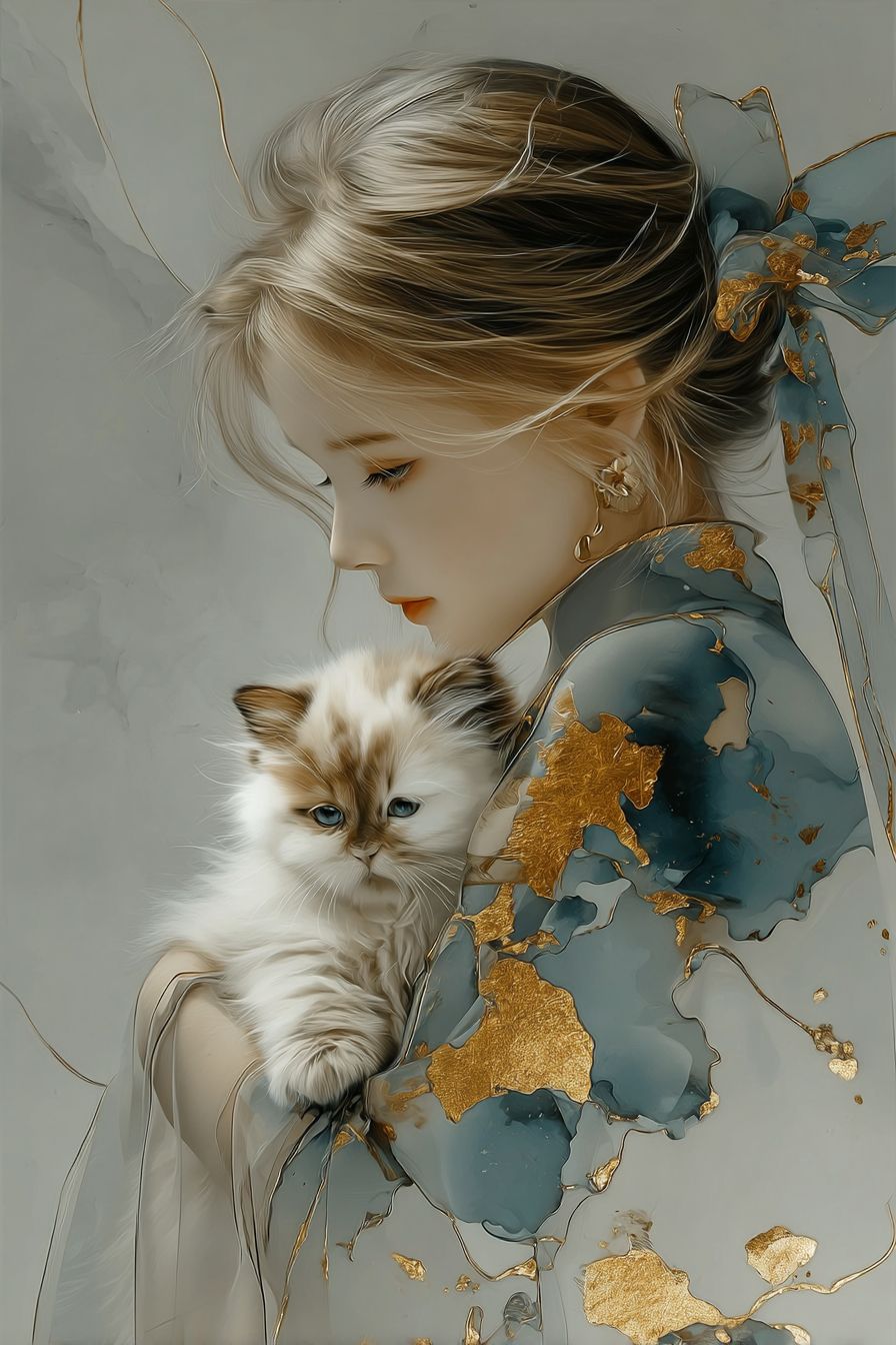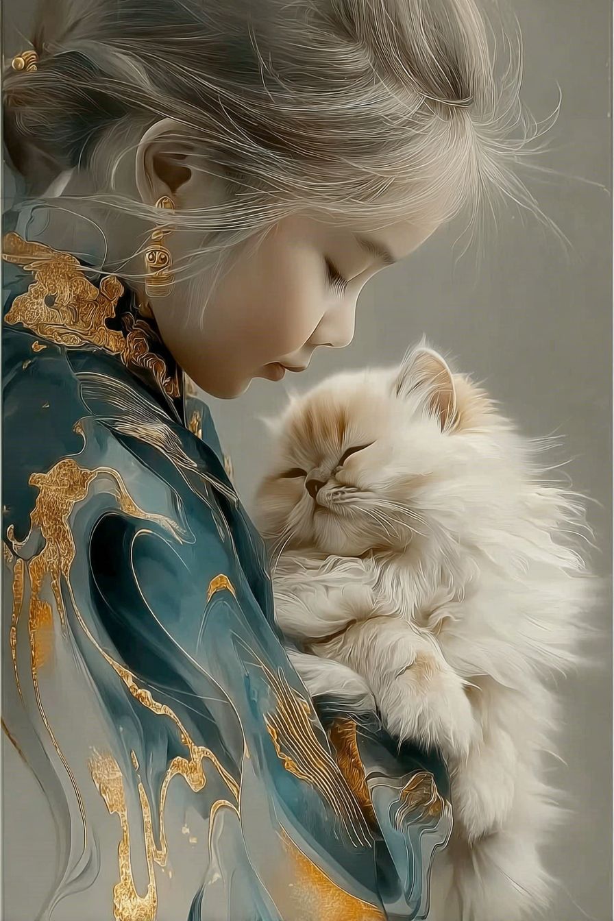 فتاة شابة جميلة وقطة fluffy لطيفة
