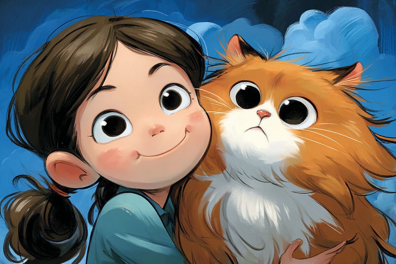 فتاة شابة جميلة وقط fluff صغير ولطيف