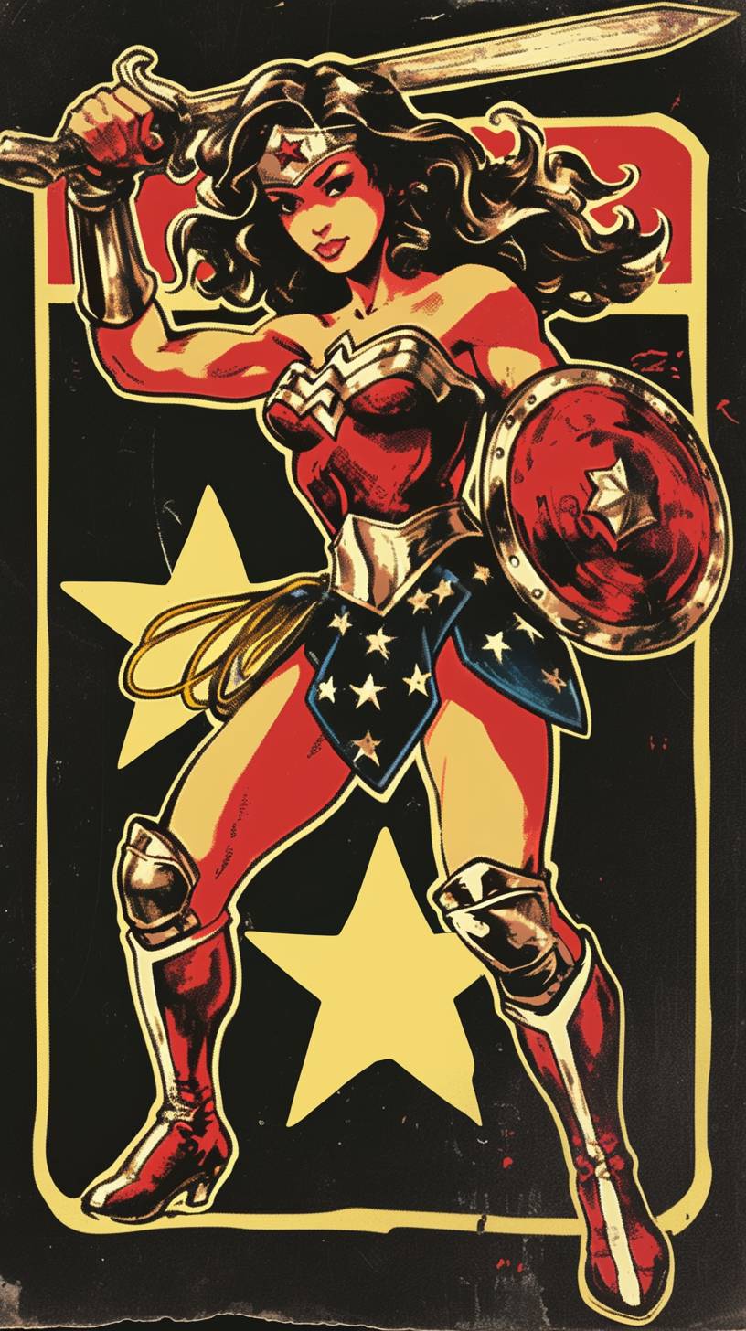 Wonder Woman, in the style of frank frazetta, marvel comics, mind-bending illusions, womancore, flawless line work, made of mist, comiccore, wild and daring, shot on 70mm, dark gold and red, detailed costumes, chiaroscuro mastery, creepypasta, award winning --ar 9:16 --style raw --sref 1061723151 --niji 6