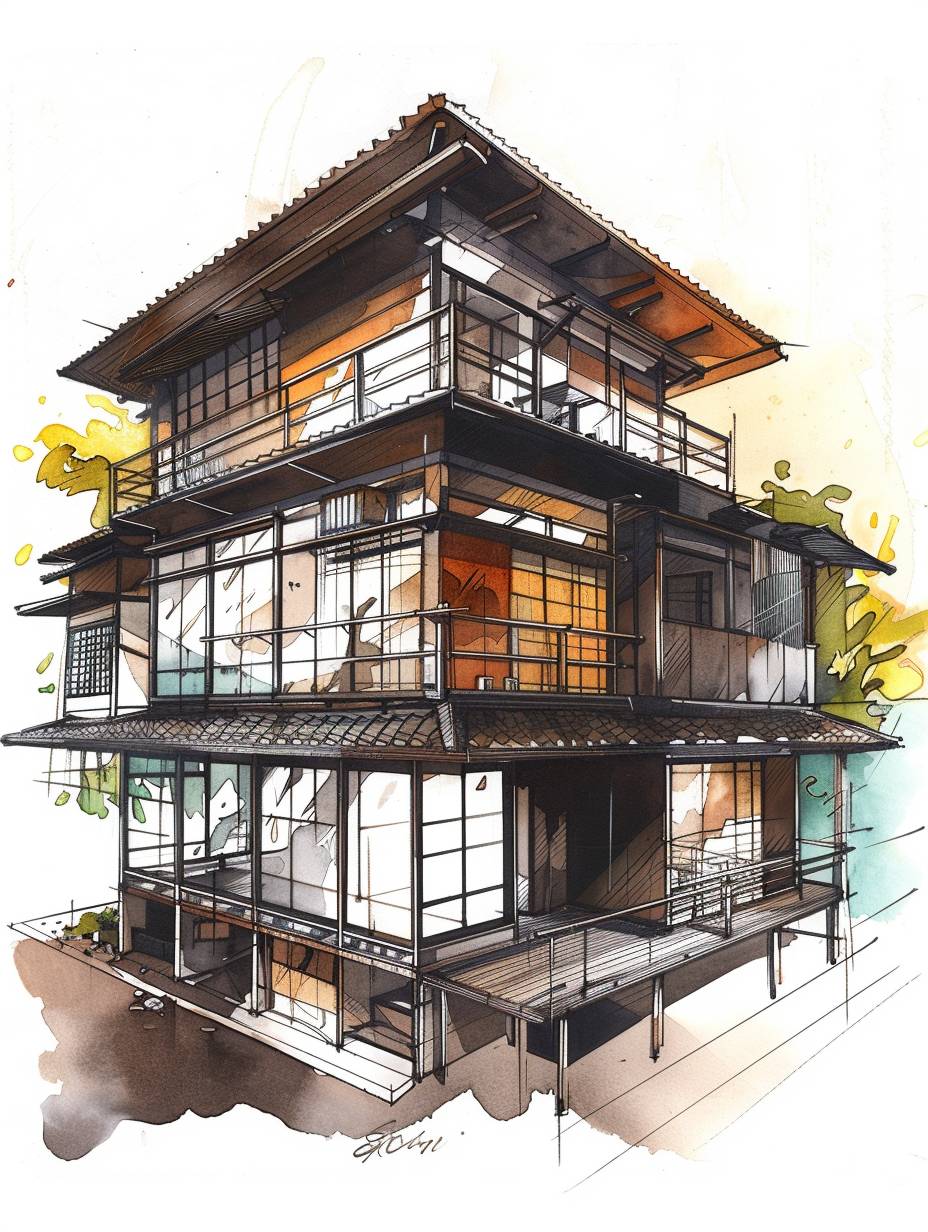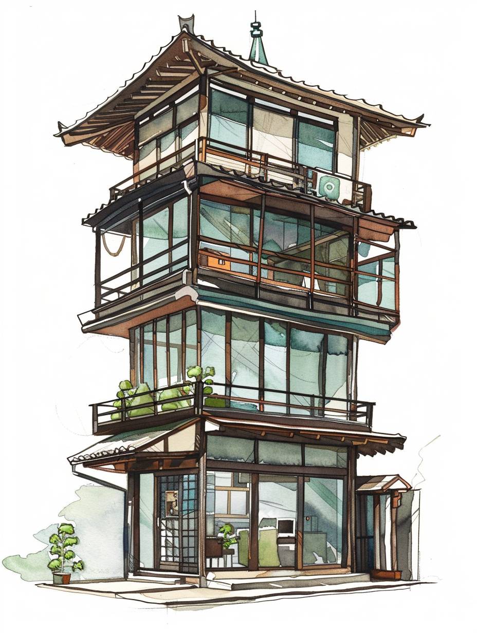 فن المفهوم لاستوديو الرسوم المتحركة الياباني الصغير المكون من أربعة طوابق
