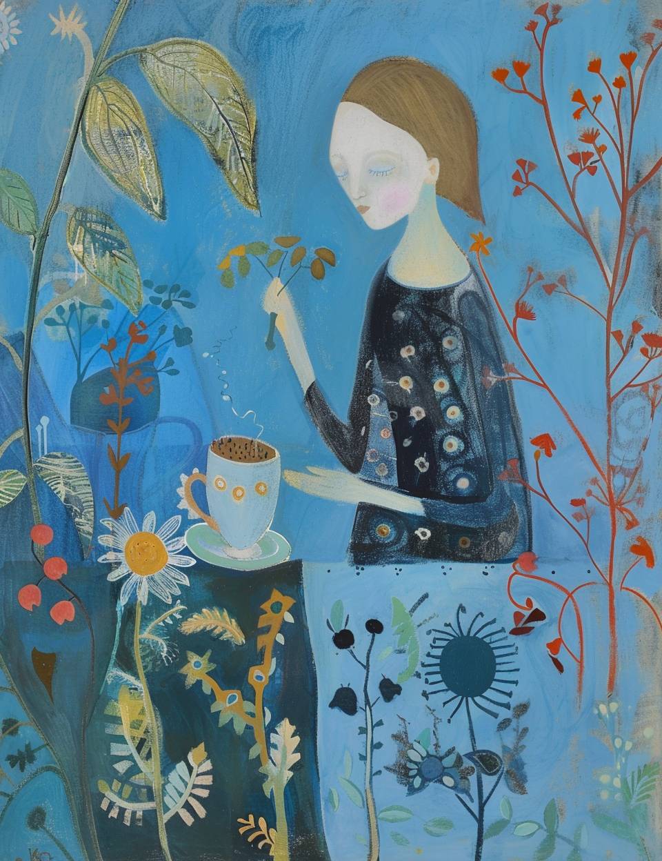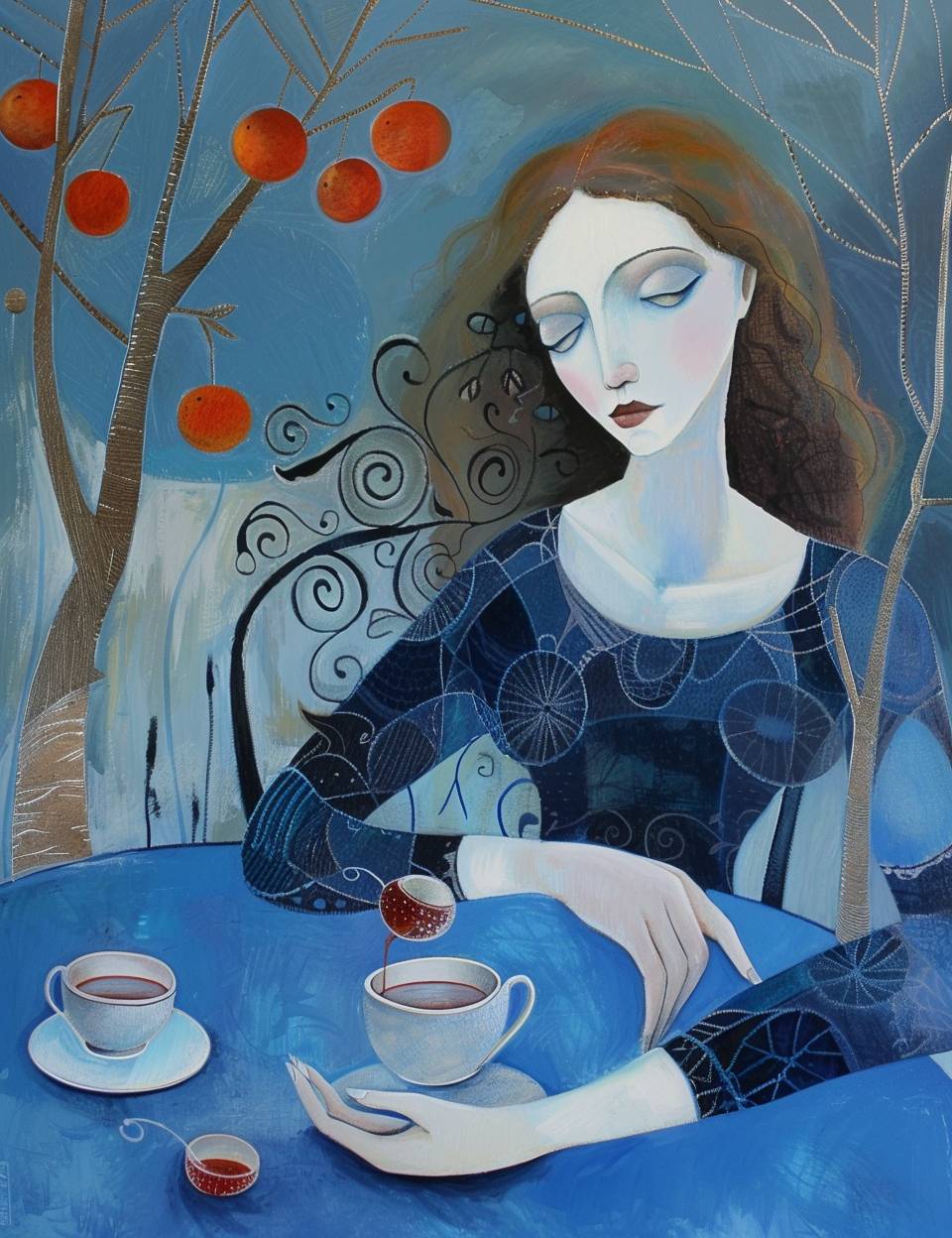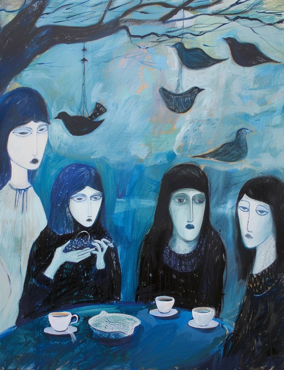 لوحة تجريدية زرقاء ، حفلة شاي مصاصي الدماء ، لون باستيل