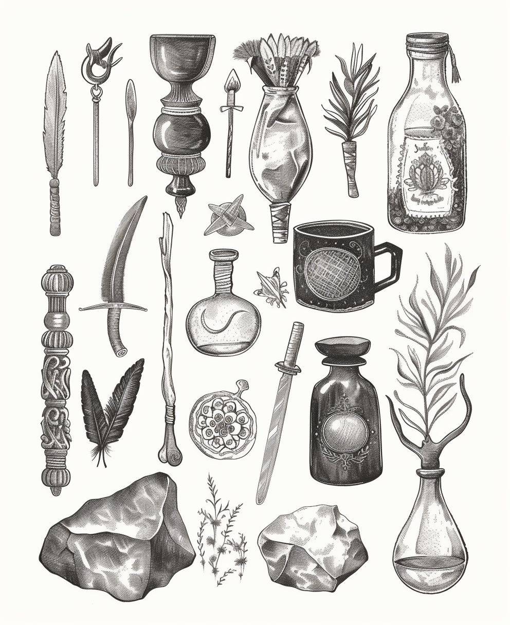 رسمة خط سميك بسيطة لأشياء بوهيمية