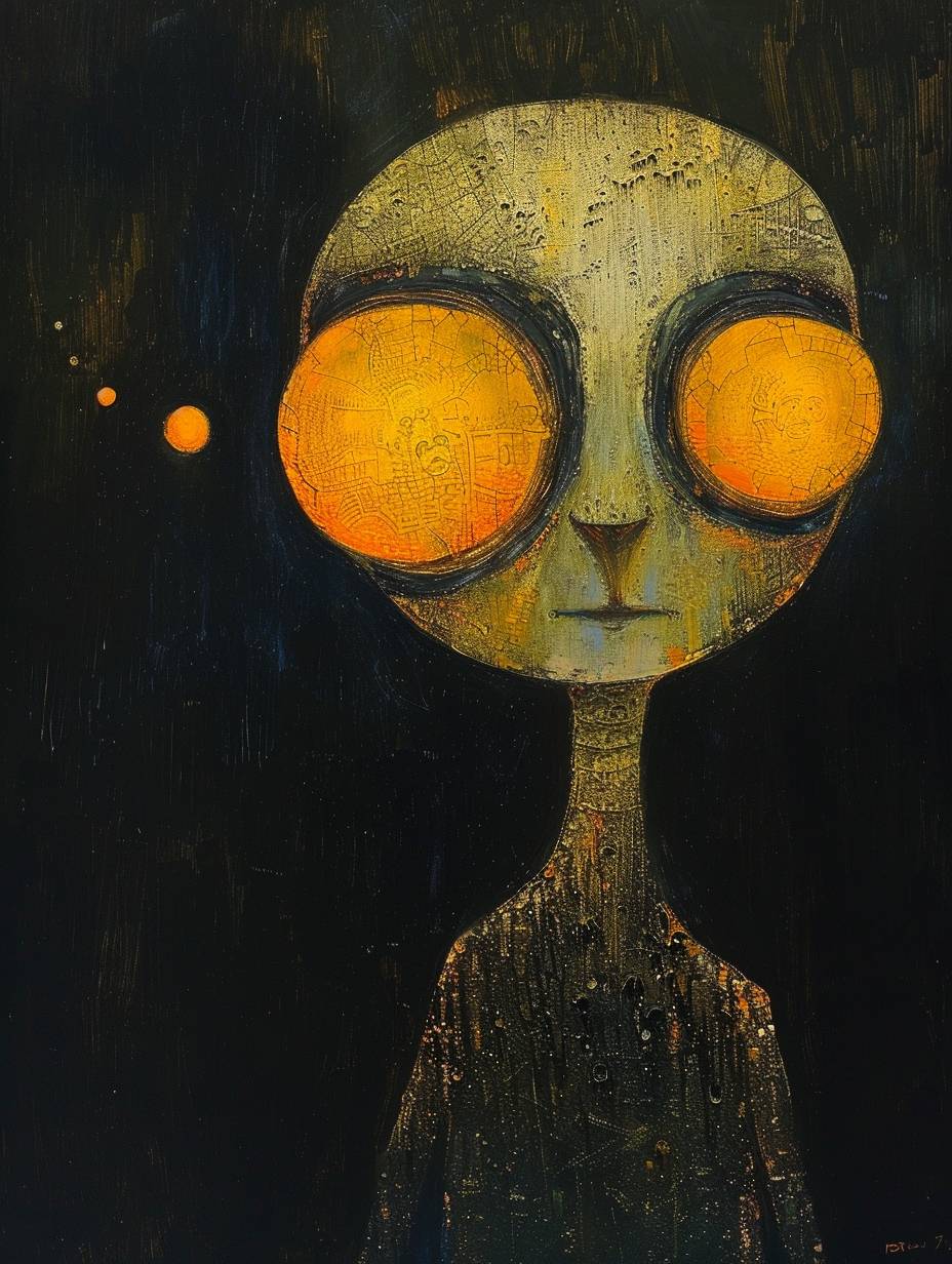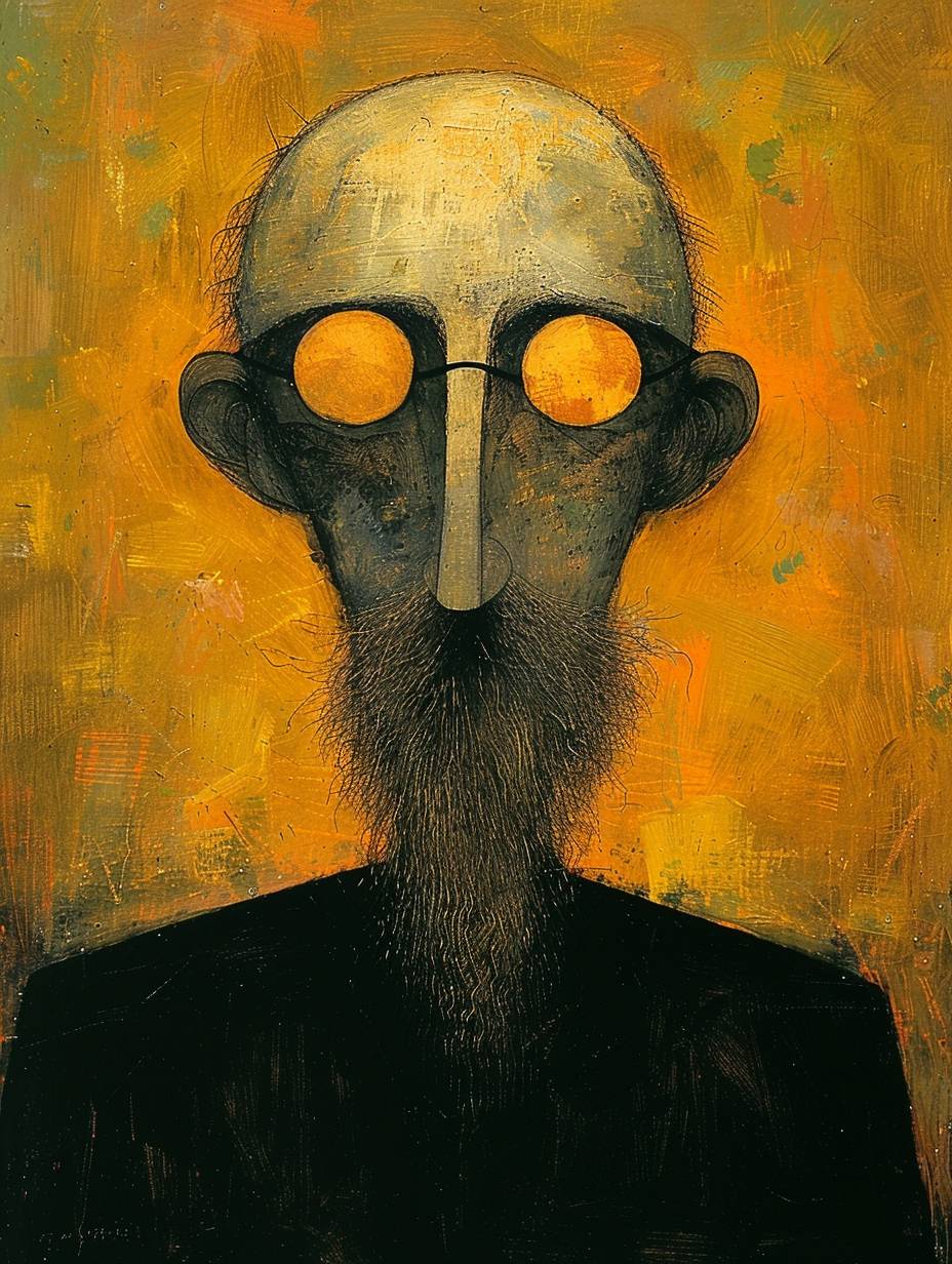نظارات برتقالية على وجه بشع، بأسلوب بكسينسكي