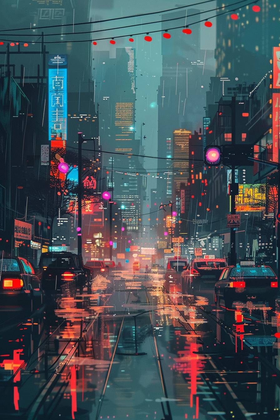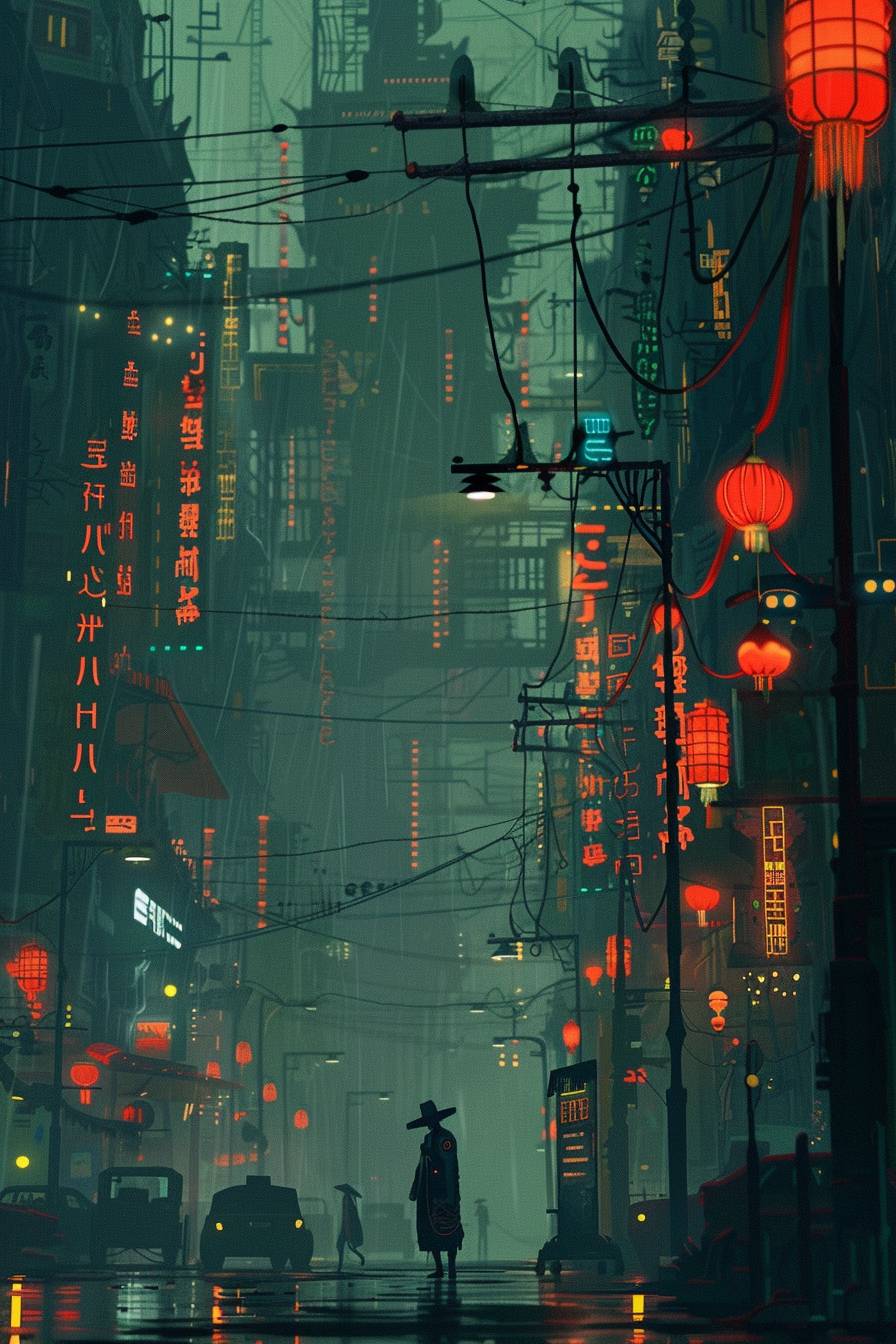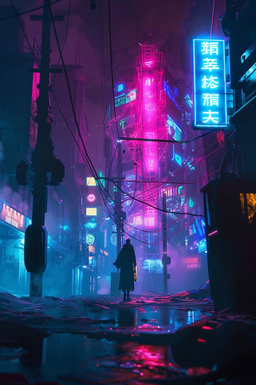 مشهد شارع سايبربانك مع أضواء نيون