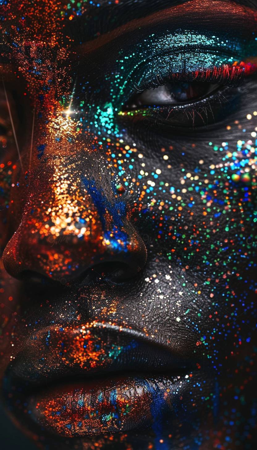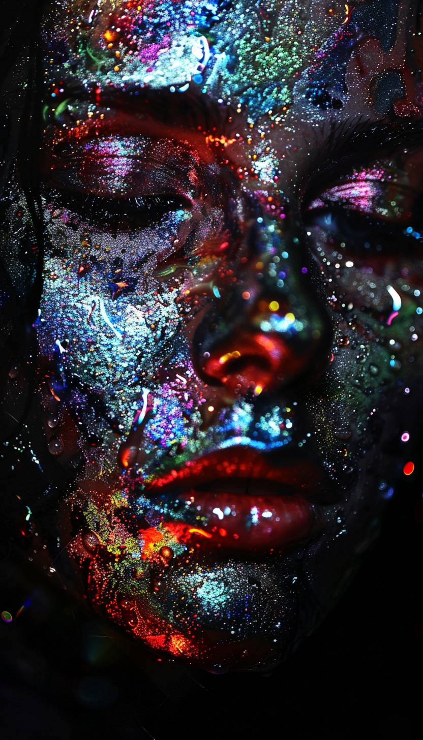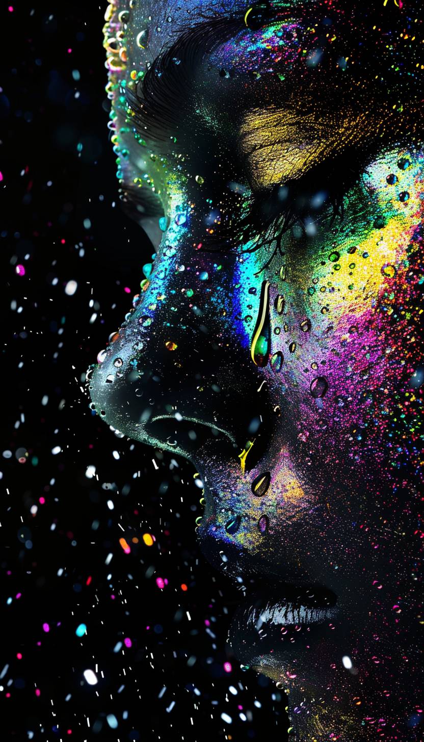 قطرات تشكل نمط هندسي تجريدي لوجه امرأة