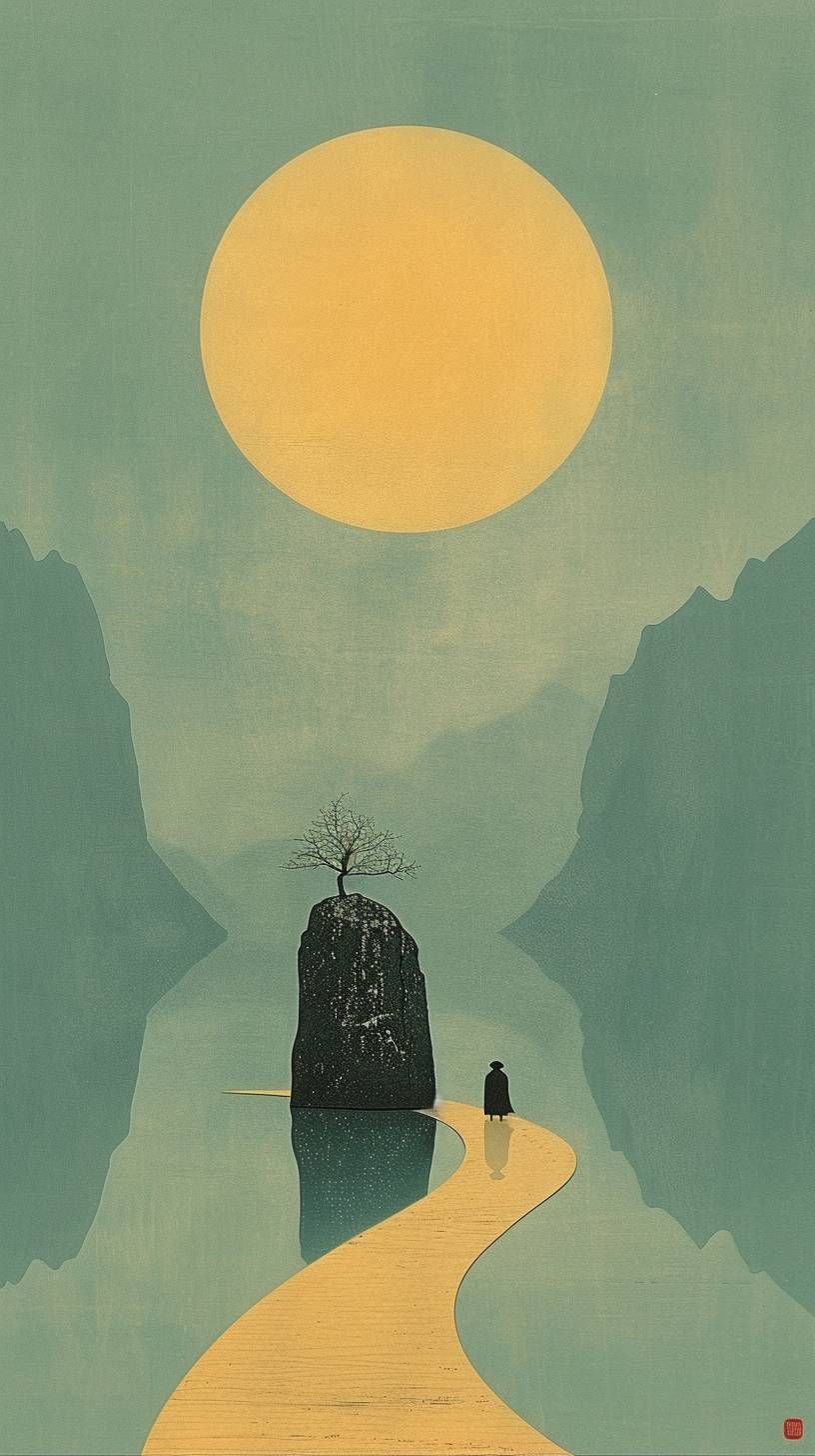 Solitary, transcendent, unseeking, absorbed in stillness and doing non-doing, you will find that the universe comes to you. Rockwell Kent, Georgia O’Keeffe, Paul Klee and Rockwell Kent, --ar 9:16 --personalize ac4x58u --stylize 1000 --v 6.0