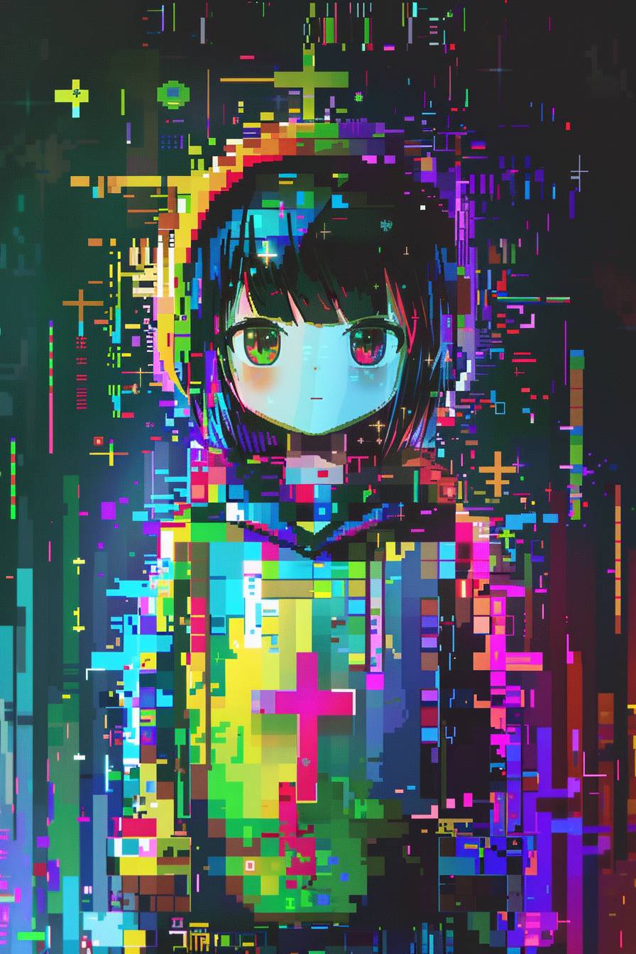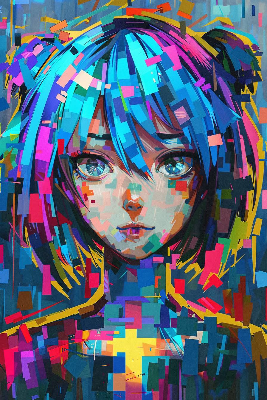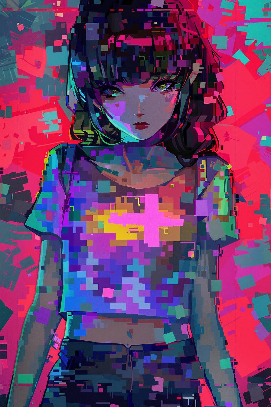 فتاة أنمي بنمط فوكسي ملون متقاطع