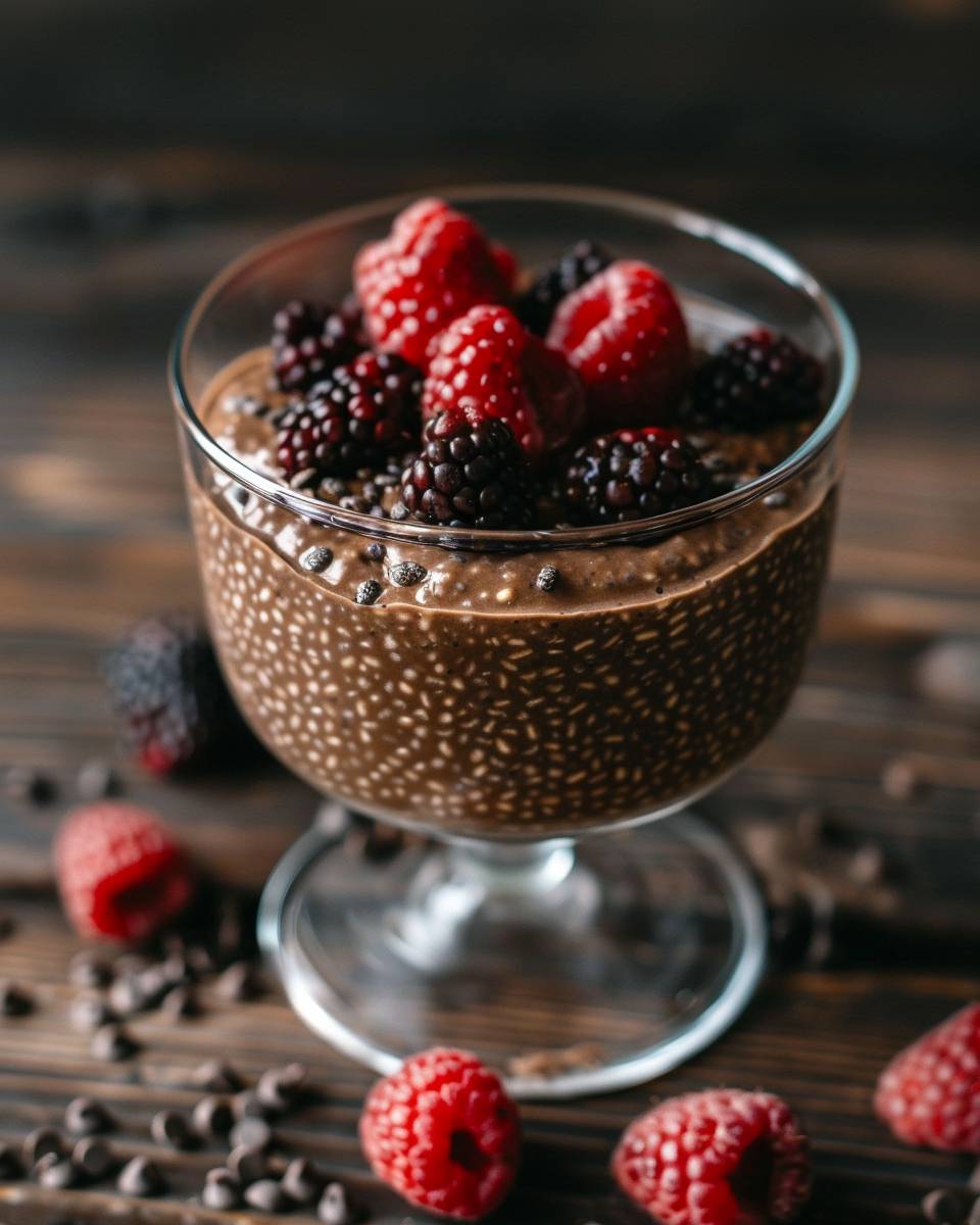 لقطة قريبة ماكرو لبودينغ الشيا بالشوكولاتة