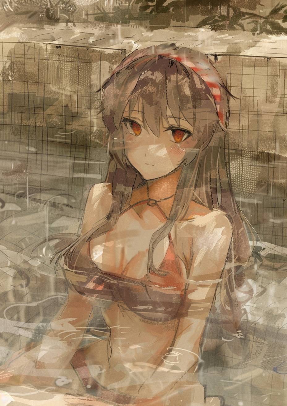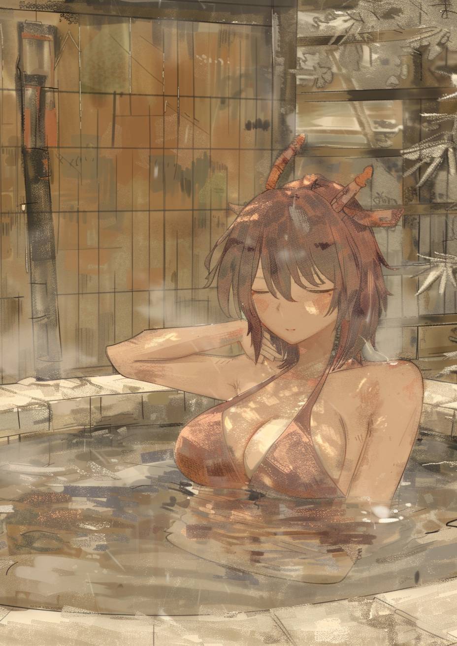 أيومي تستمتع بمياه الينابيع الساخنة في الشتاء.