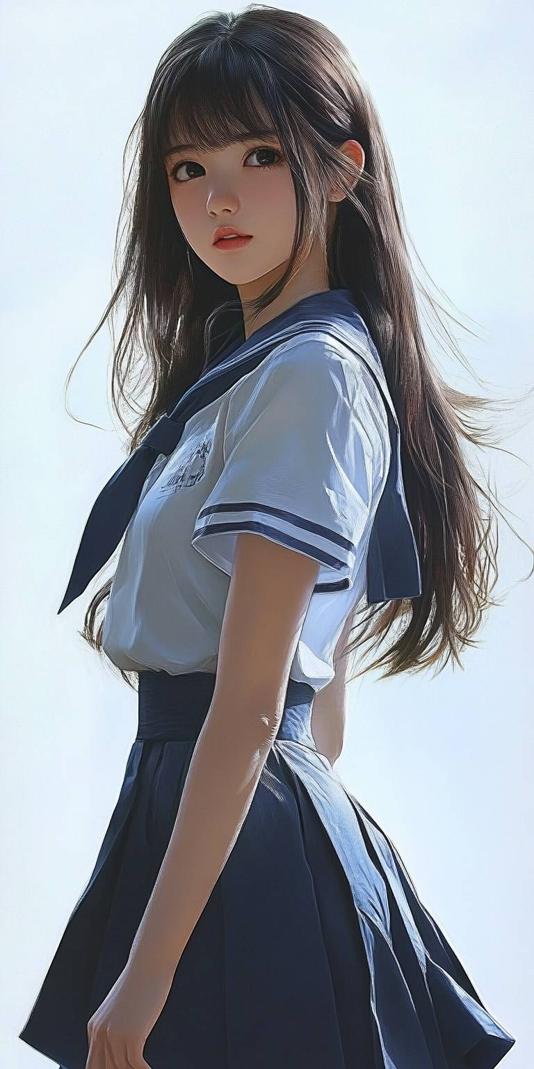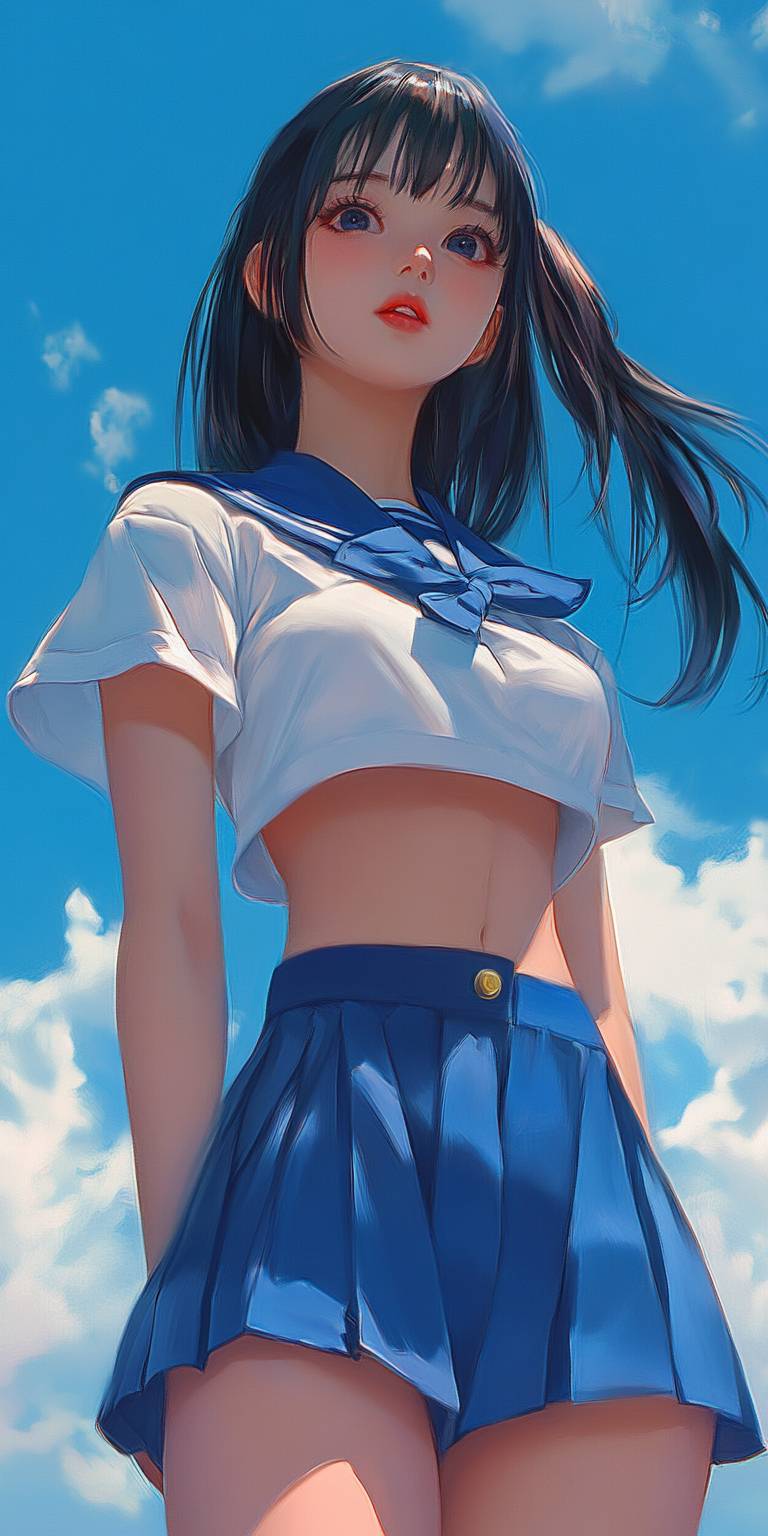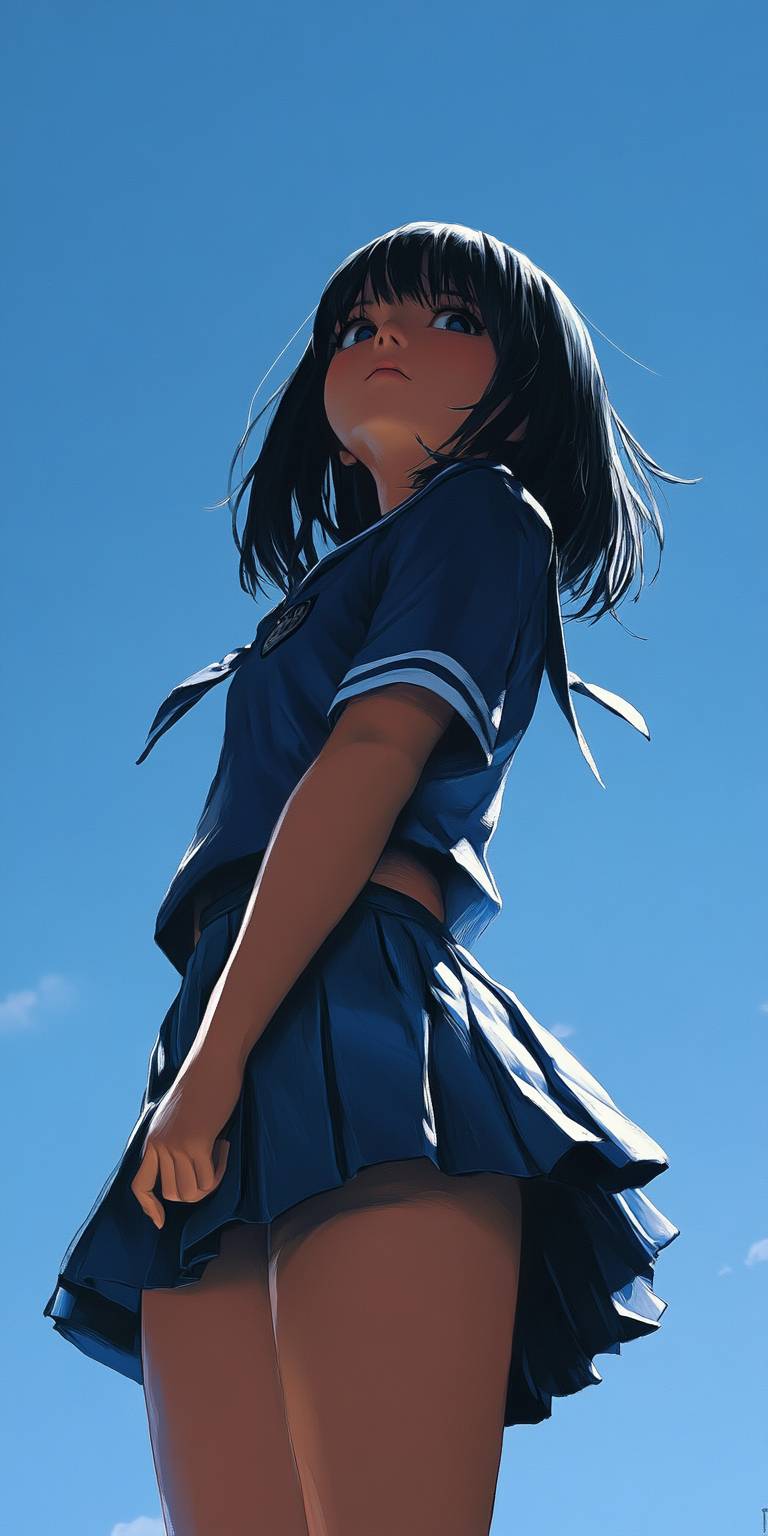 فتاة مدرسة ثانوية في الأنمي ترتدي زيًا أزرق