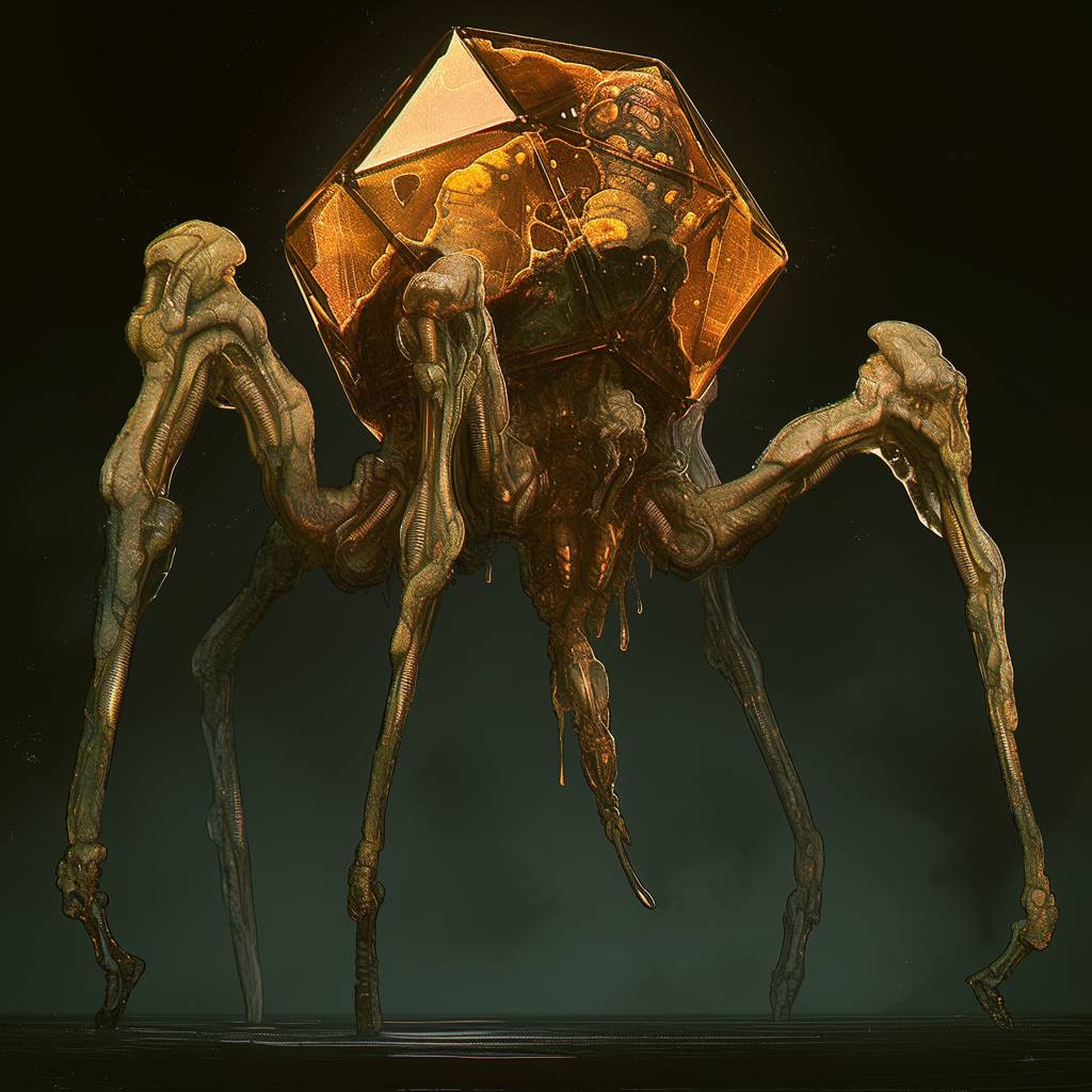 كائن فضائي بحجم كلب اللابرادور تقريبًا له جسم خماسي الشكل وخمسة أرجل تشغي من درع خماسي صلب مركزي. جسمه مغطى بالعديد من أجهزة الاستشعار الدقيقة، ويصنع الدرع من معادن مؤكسدة، والهيكل العظمي عبارة عن سبيكة شبيهة بالشبكة، ويتكون أساسًا من زئبق سائل. العضلات مصنوعة من مادة مسامية محاطة بأكياس سائلة.
