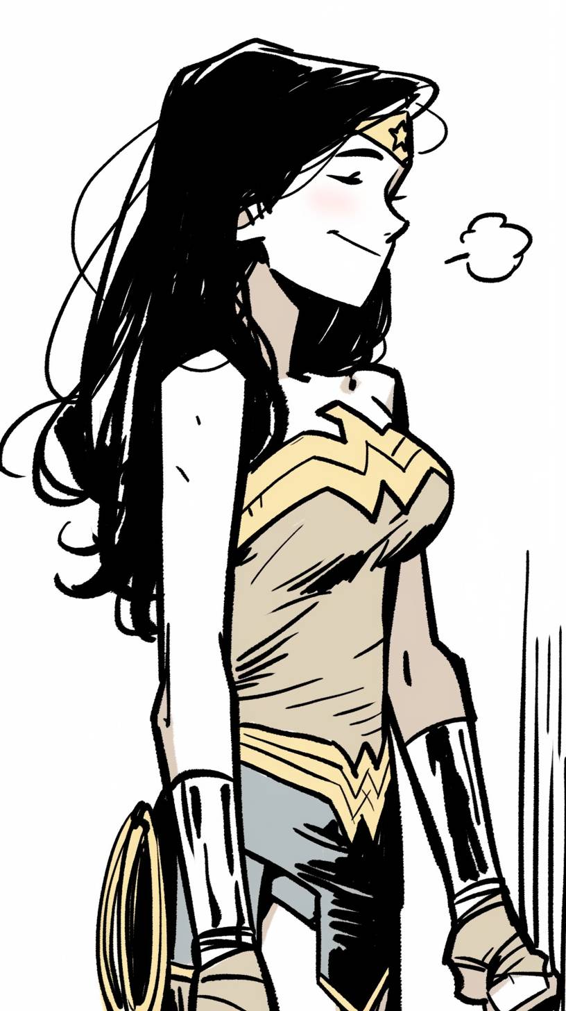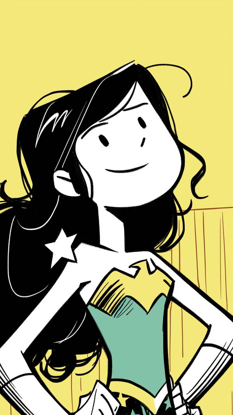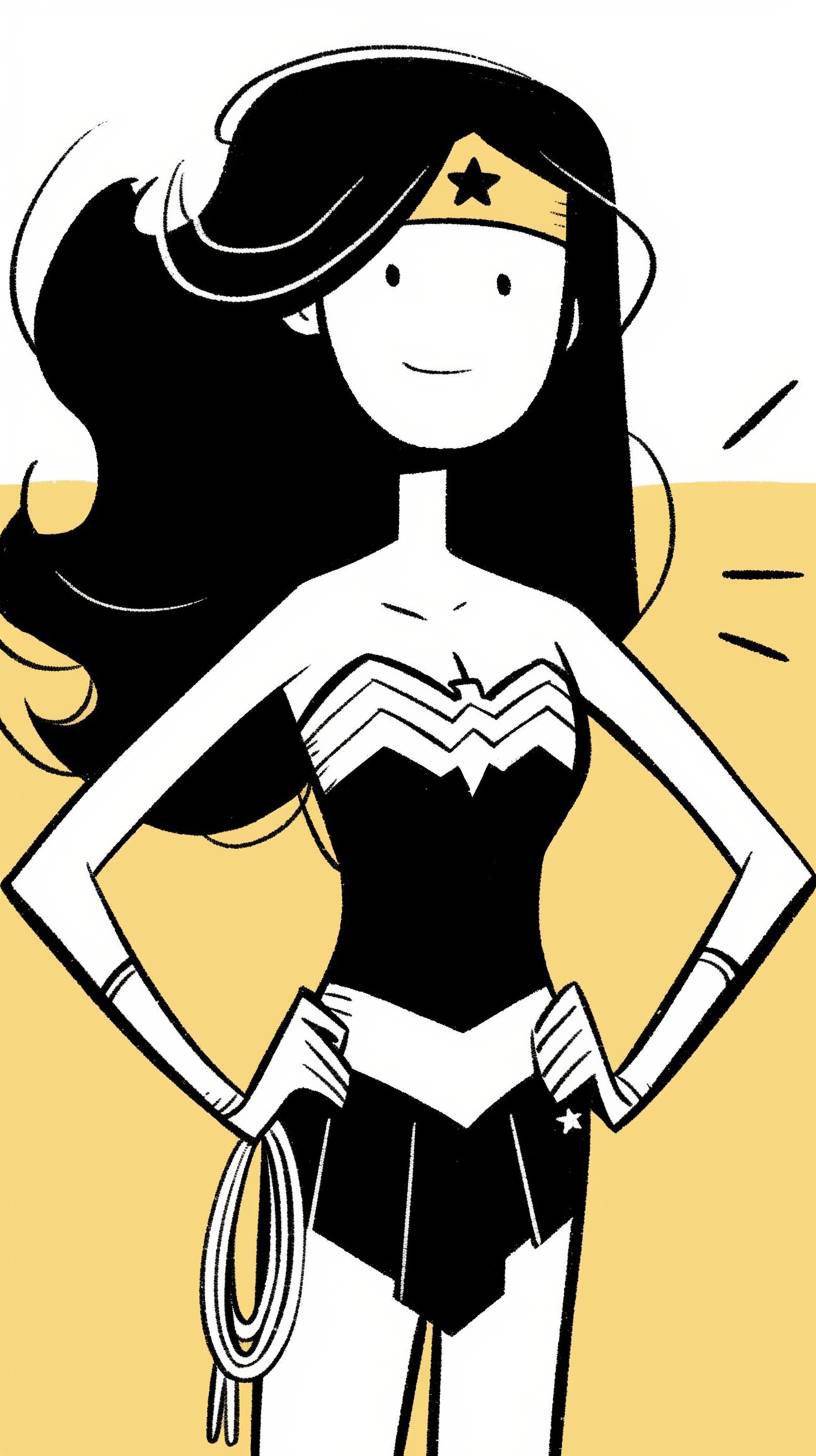 A simple drawing of Wonder Woman, in the style of Allie Brosh with simple lines, flat colors and a stick figure, minimalistic, simple background --ar 9:16 --style raw --sref 175039056 --niji 6