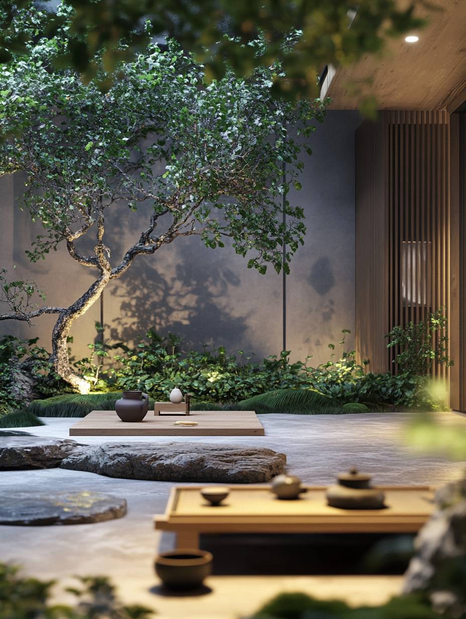 Schaffung einer ruhigen Teekultur-Atmosphäre, die Natur mit traditionellen chinesischen Designelementen verbindet.
