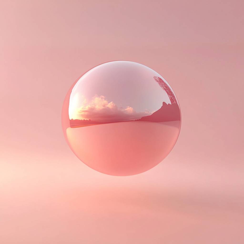 A 3D icon , warm color palette,design features a floating, glossy sphere in soft pink and peach tones,subtle glow surrounding it,cloud-like hover around the sphere, softness and tranquility,smooth,pillowy textures, appealing and modern, Gentle lighting ,shadows depth ,makes the icon pop