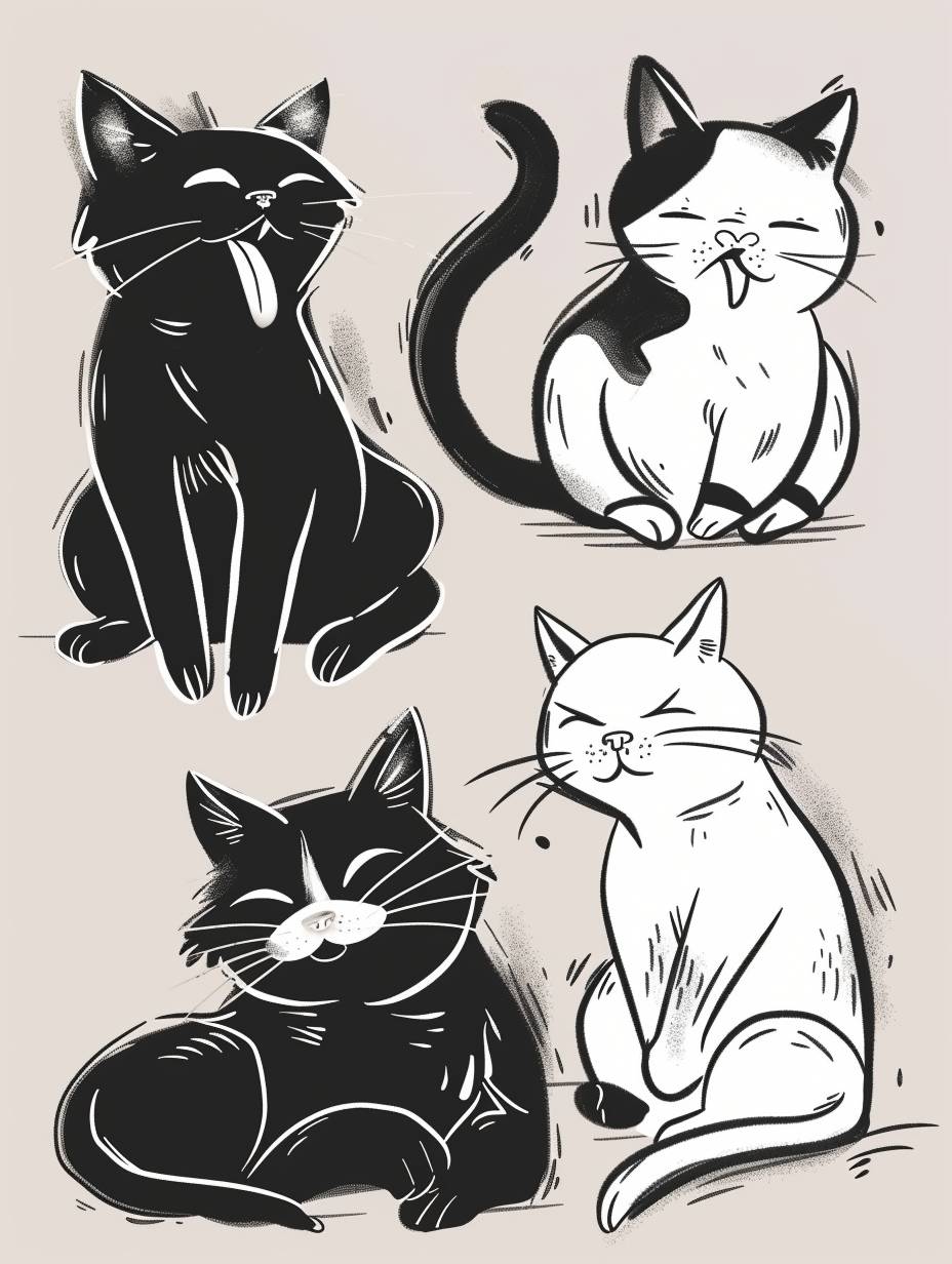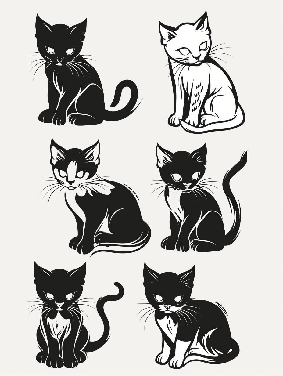 Ein Set einfacher Schwarz-Weiß-Linien von Kätzchen.