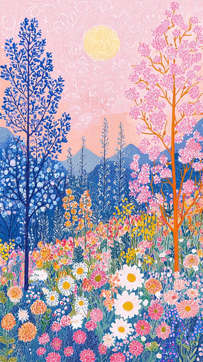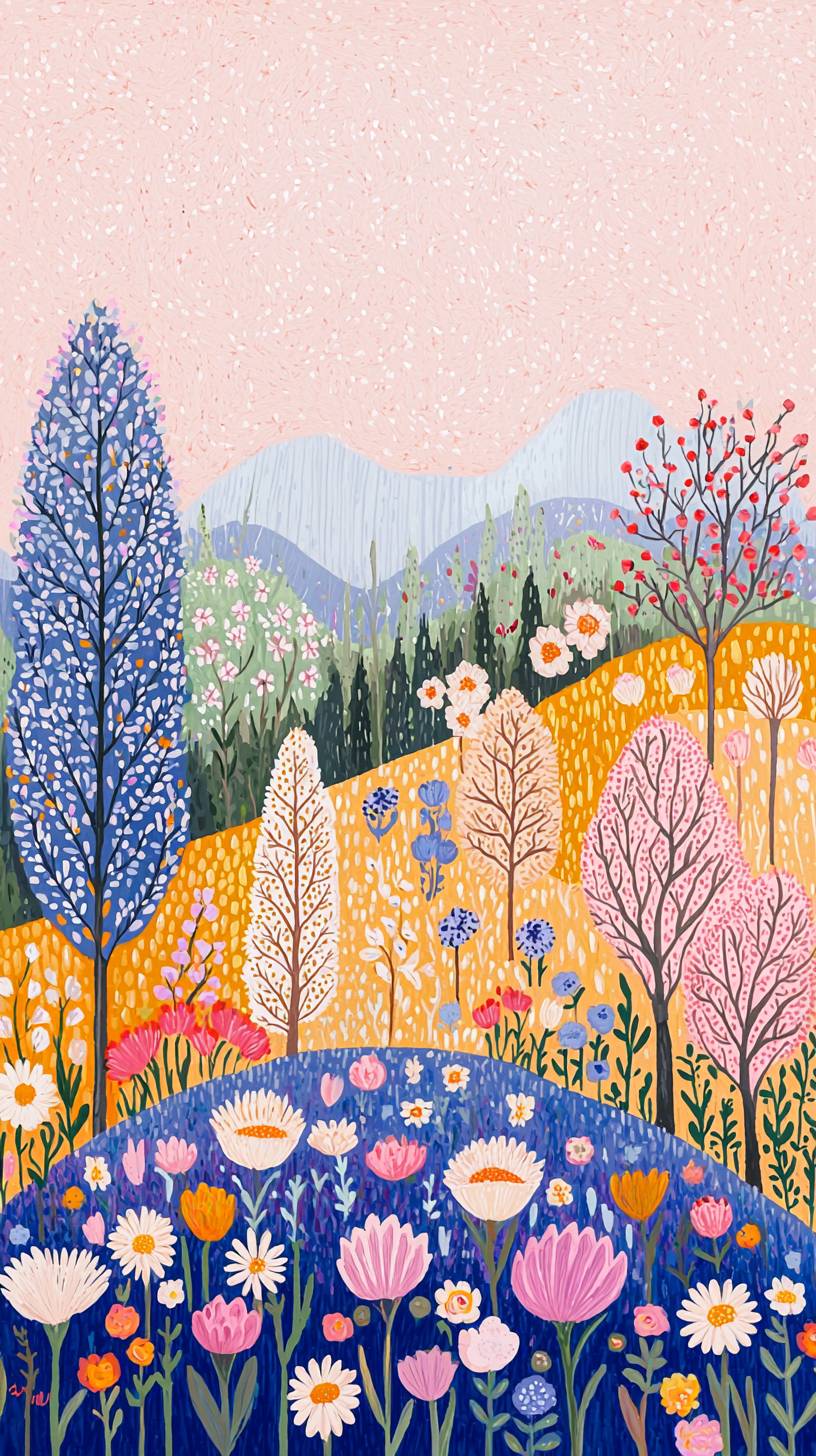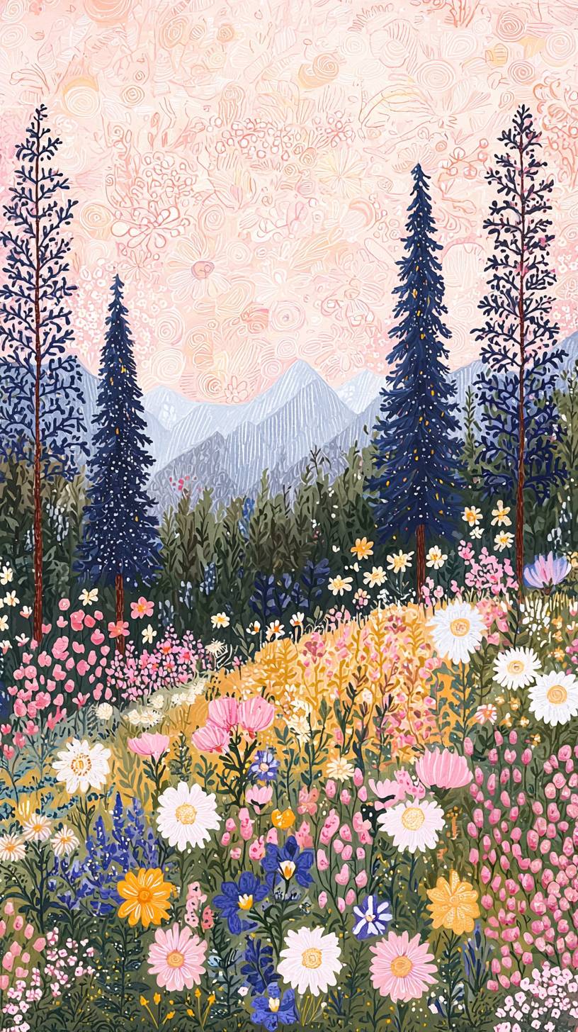 Folktale-inspired illustrations, boldly patterned quilts, pastel colours, bloomcore, mix of paintings and ceramics, precise and detailed tense drawings, cute and dreamy in Olivia Gibbs' illustration style Cedrus deodara (Roxb.) Loudon, Deodar cedar, Himalayan cedar, Deodar, Strength, Blue Star Sapphire --ar 9:16 --quality 2 --style raw --personalize hq1xebf --stylize 1000 --v 6.1