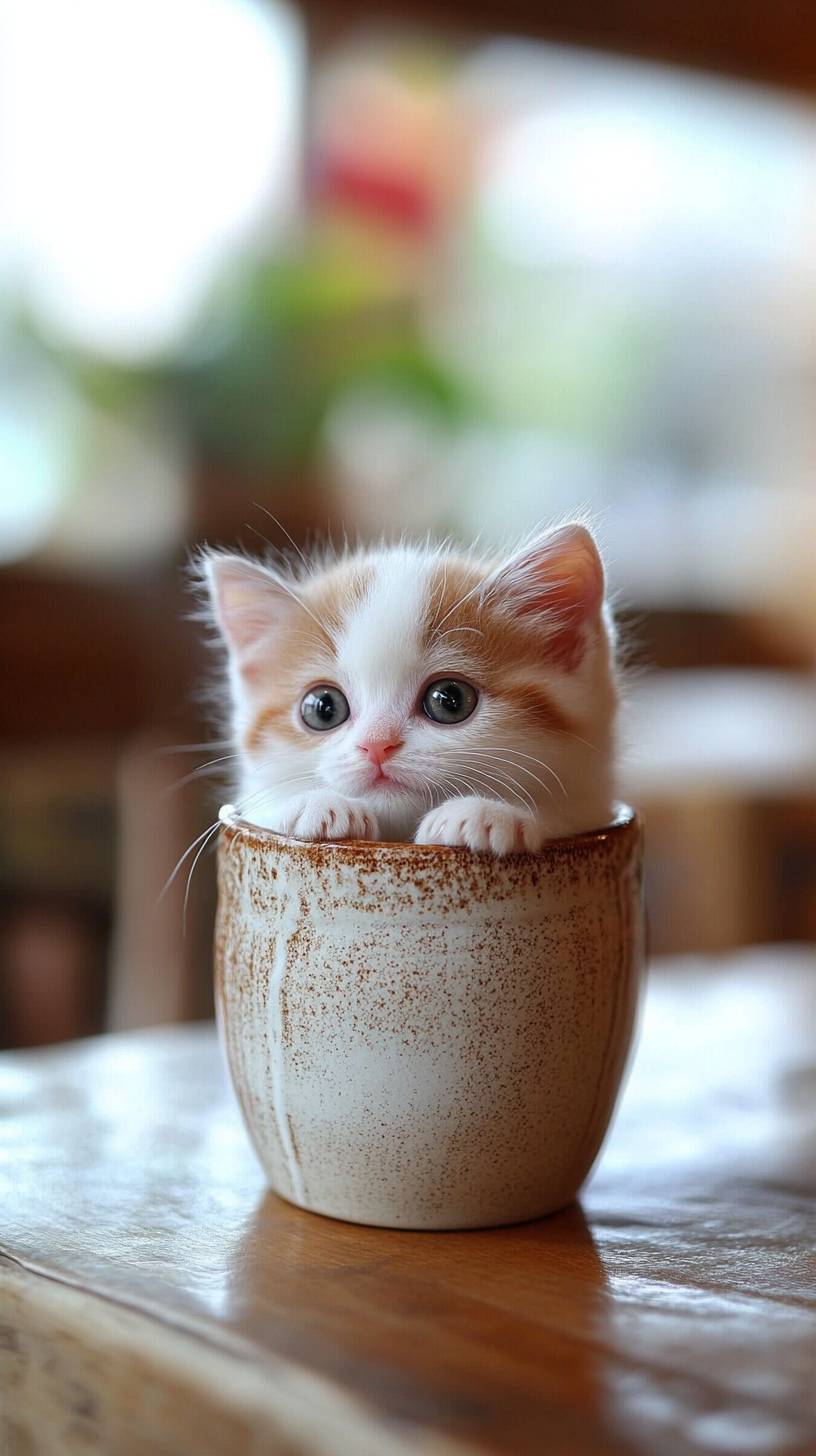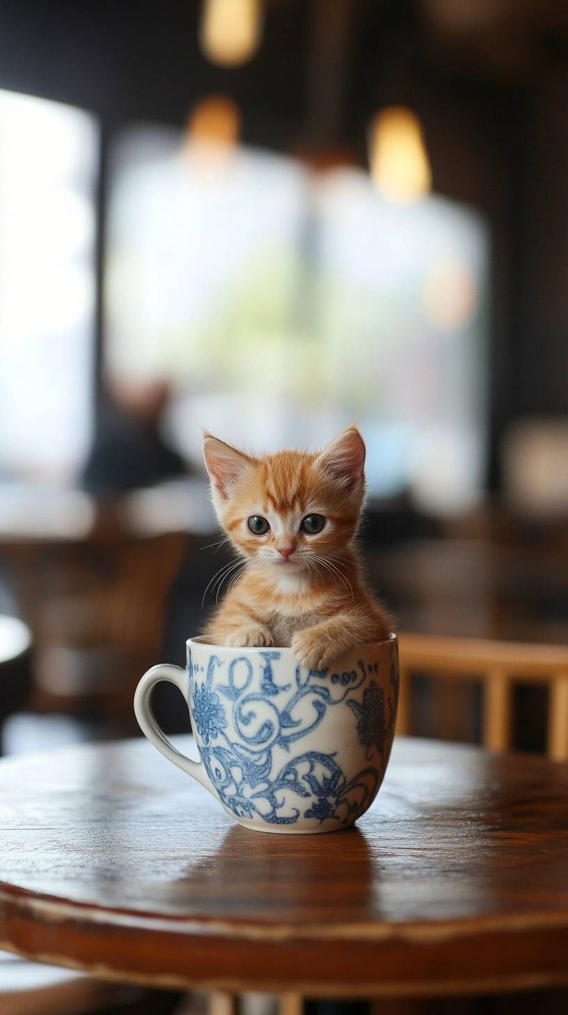 Die kleinste Katze der Welt sitzt in einer Restauranttasse.