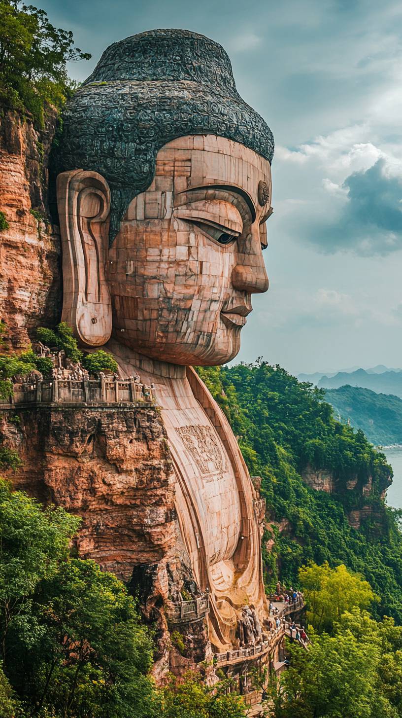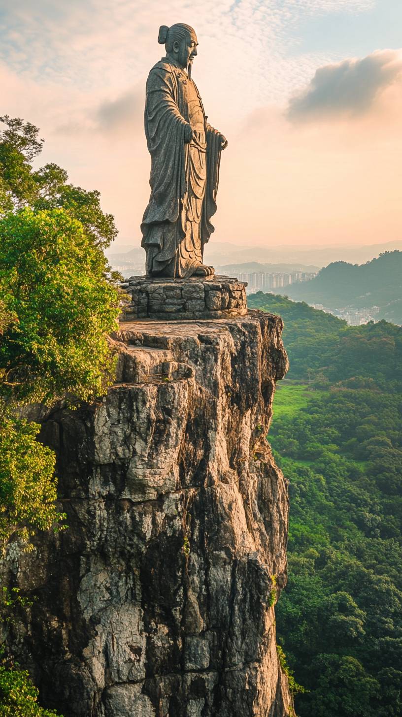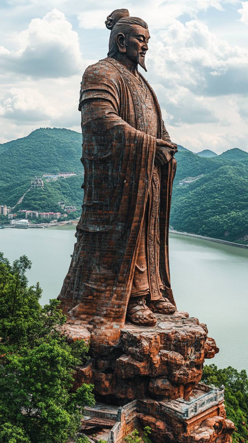 Scenery at Orange Isle Head, Changsha City Majestic statue of a great man Charming views Romanticism Ultra HD picture quality National geographic indication --ar 9:16 --v 6.1