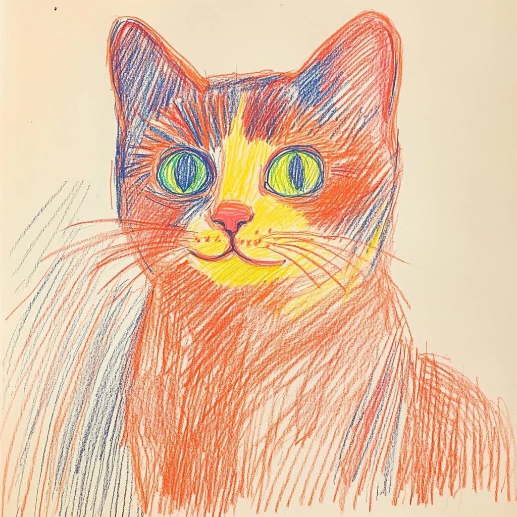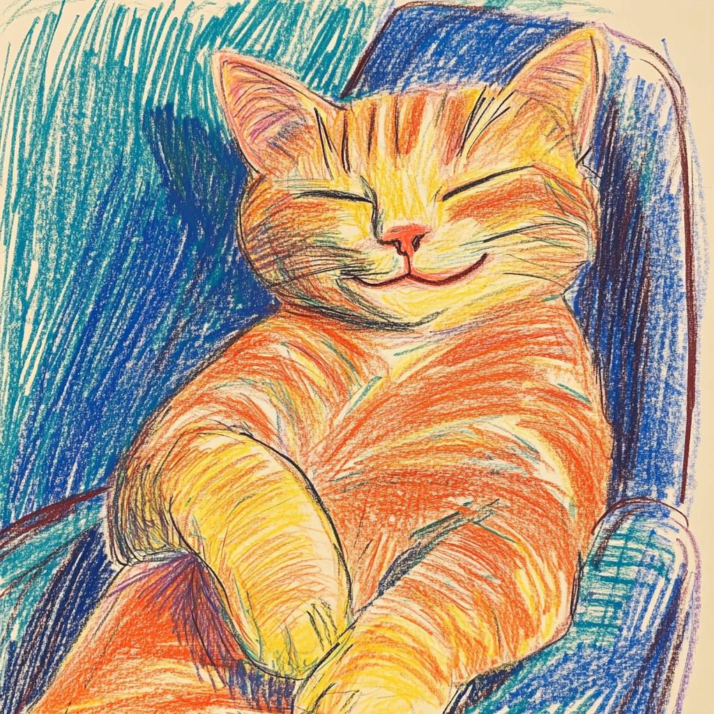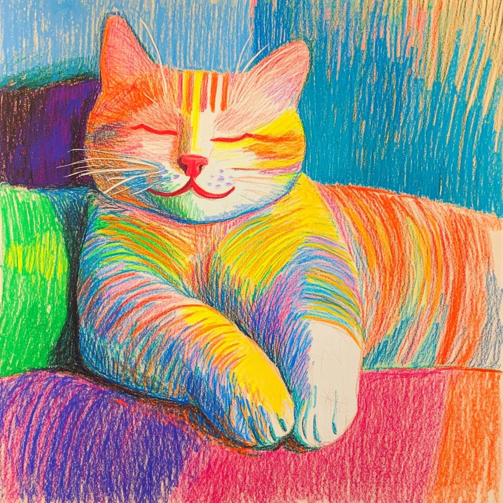 Niedliche ganzkörper Kreidezeichnung einer Katze