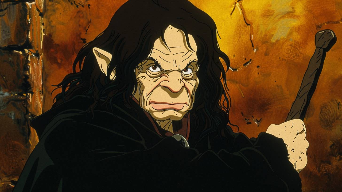 Ozzy Osbourne als Hobbit-Charakter in einer Sakuga-Animationszelle dargestellt.