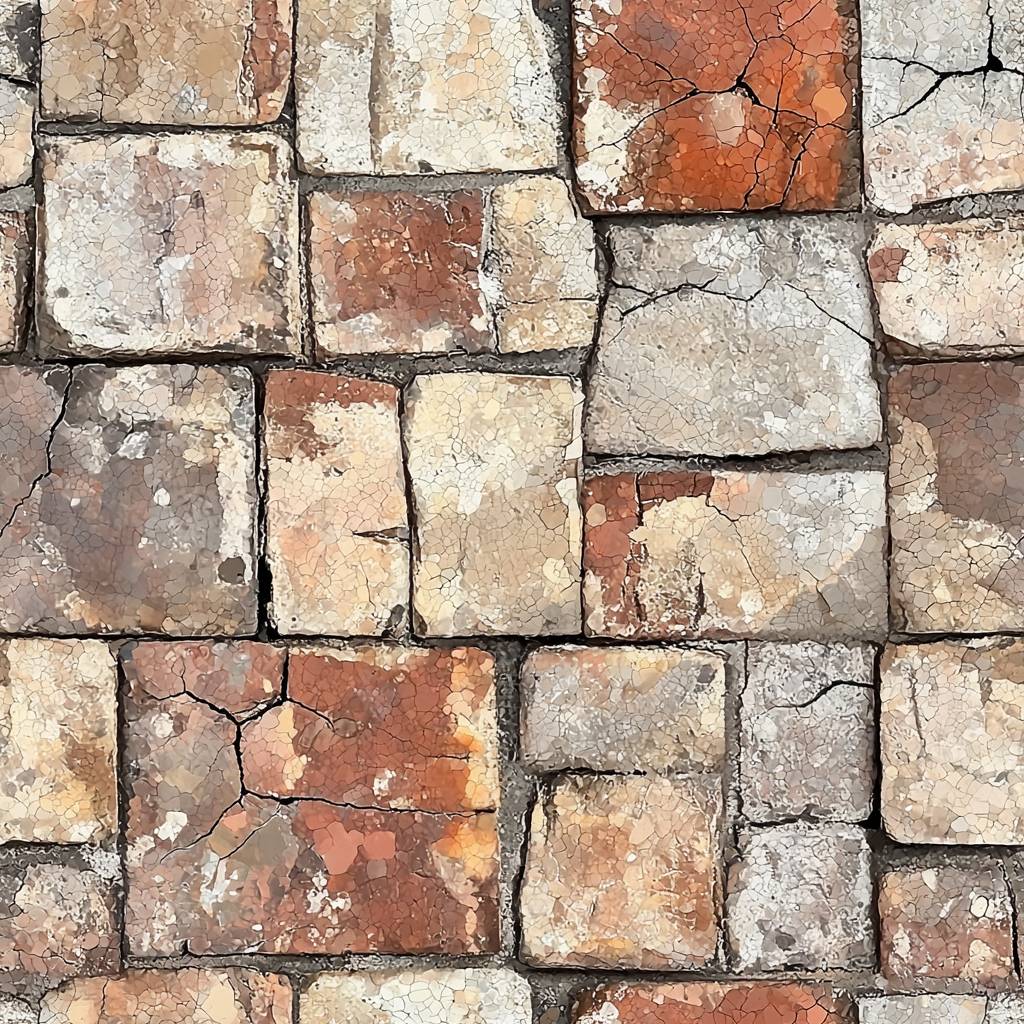 A realistic seamless pattern of an old brick wall, with the texture and colors of aged red bricks, flat design, svg like, shot from the front, front view, flat lay --ar 1:1 --quality 2 --tile --v 6.1