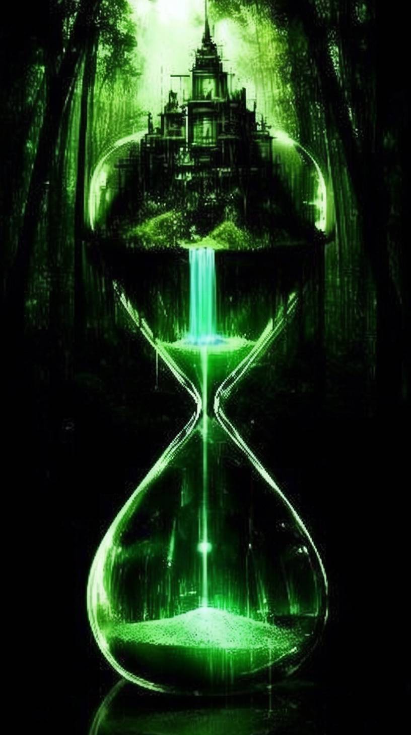 A photorealistic image of an hourglass, with the grains of sand inside taking on the colors of the Earth. The sand grains are a mix of blues, greens, browns, and whites, resembling the continents, oceans, and clouds of the planet. The hourglass is elegantly designed, with transparent glass and a slight reflection on the surface beneath. The lighting is soft, creating a natural, realistic look as the colorful grains of Earth flow through the hourglass --chaos 50 --ar 9:16 --style raw --stylize 500 --niji 6