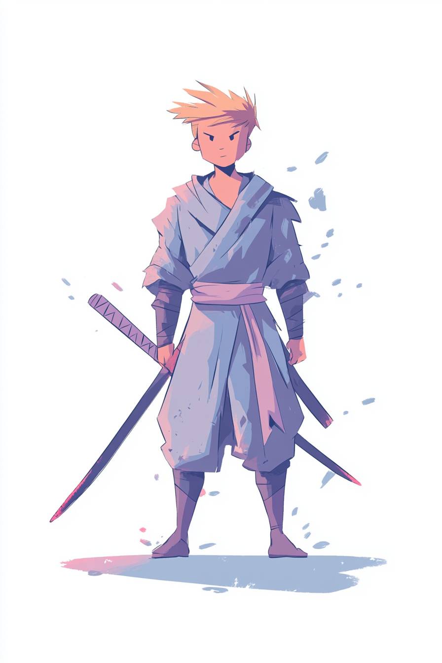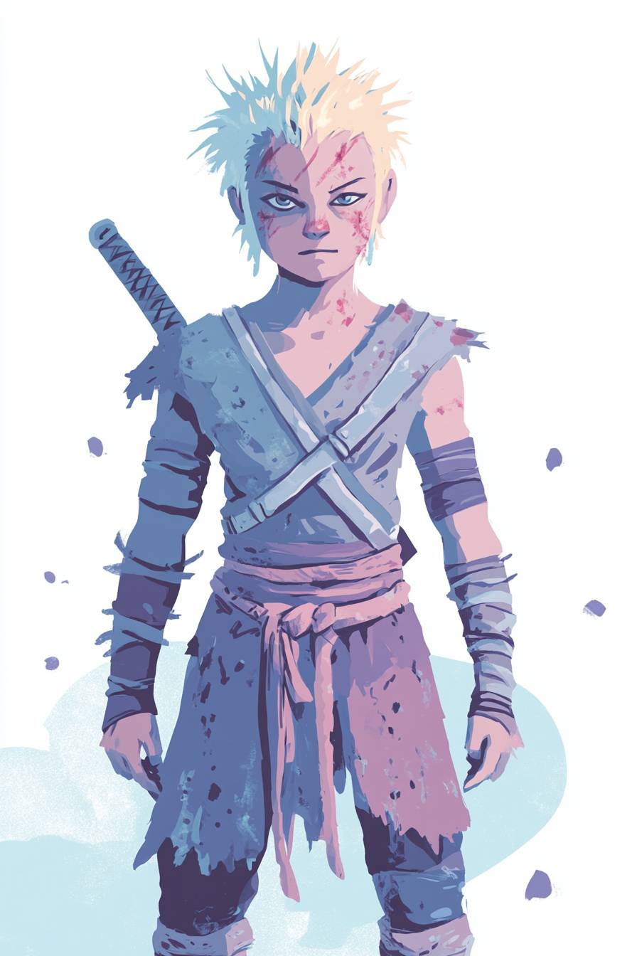 Ein junger Ninja mit stacheligen blonden Haaren.